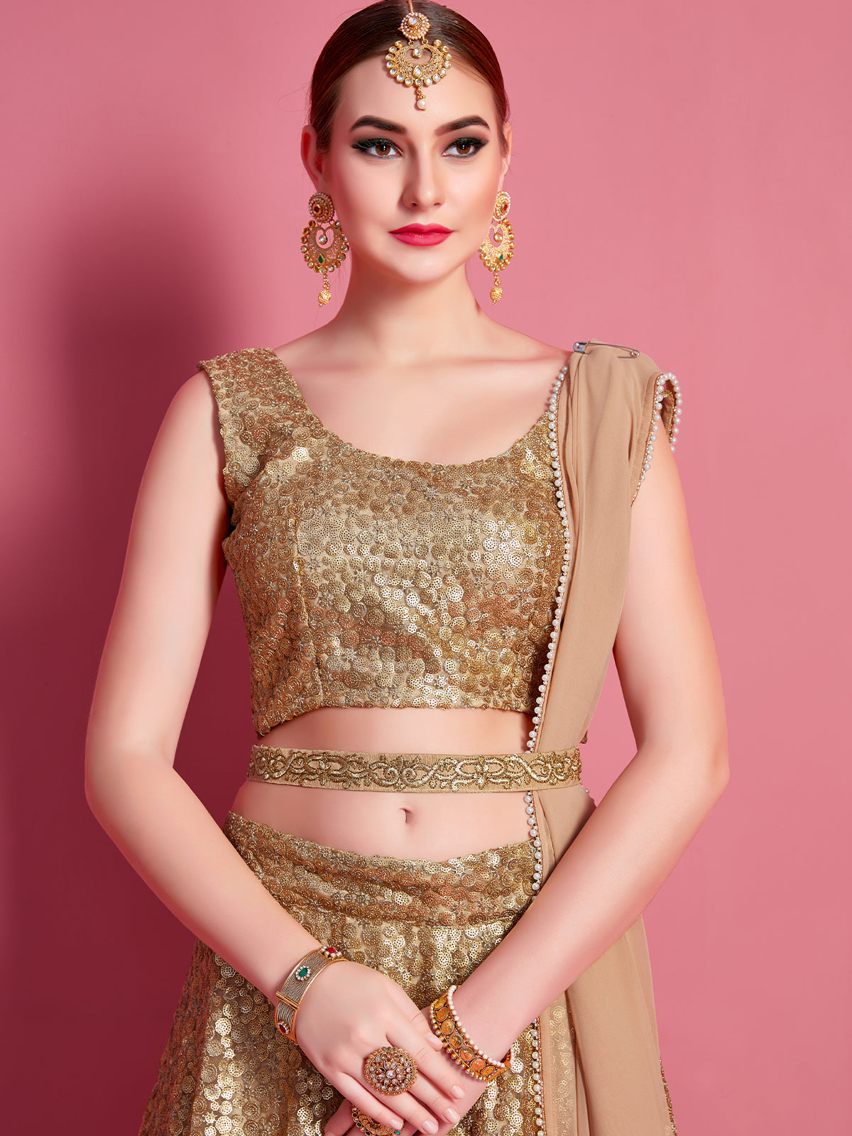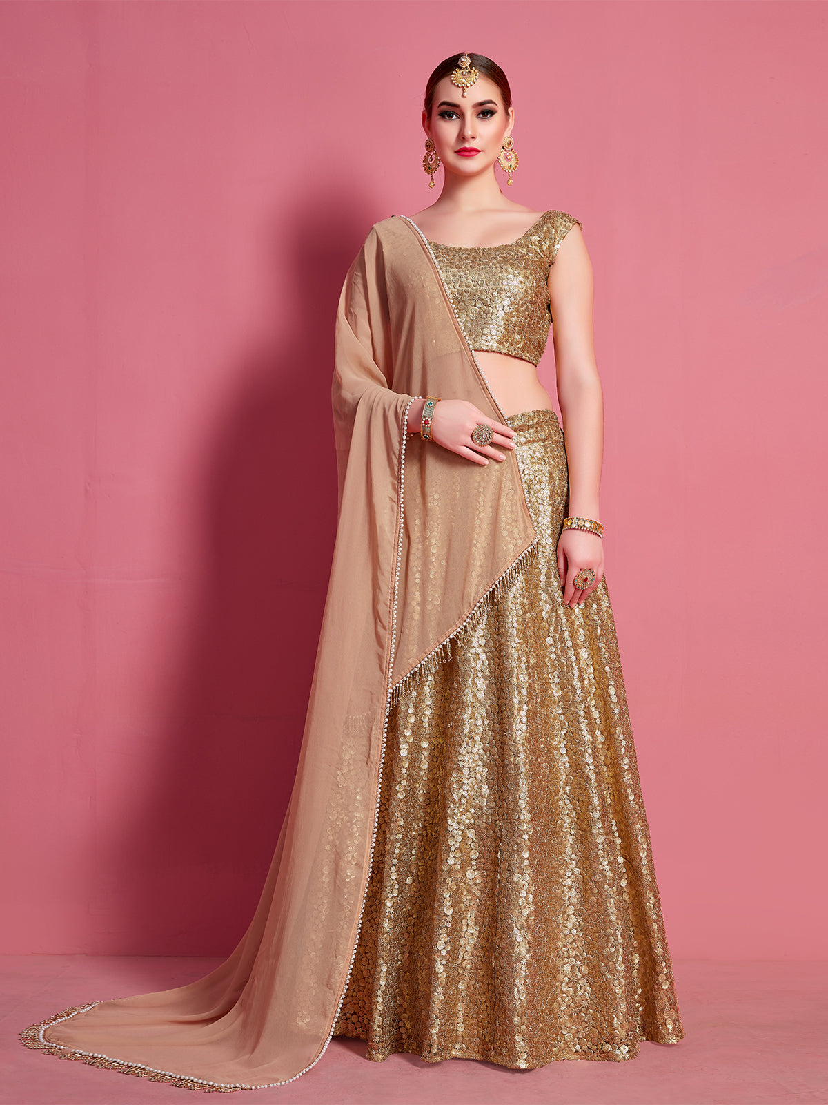 Add light to the celebration called life beaming in this lehenga, choli and dupatta set. Crafted on soft net, the set is beautified with embroidery work.