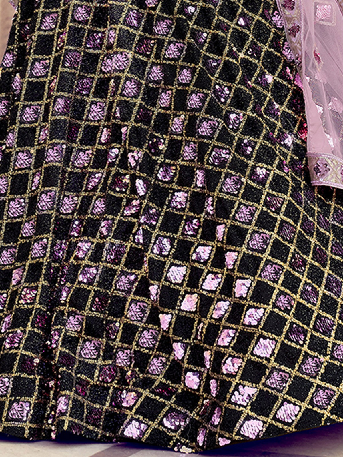 Add light to the celebration called life beaming in this lehenga, choli and dupatta set. Crafted on Fur Imported Fabric, the set is beautified with Sequins.