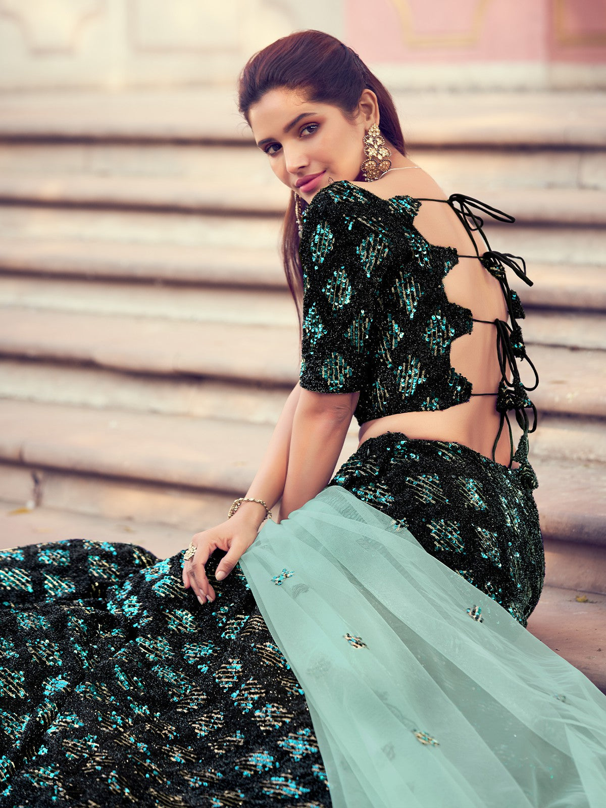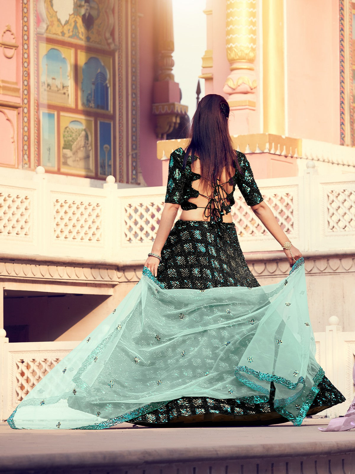 - Lehenga work : Sequins