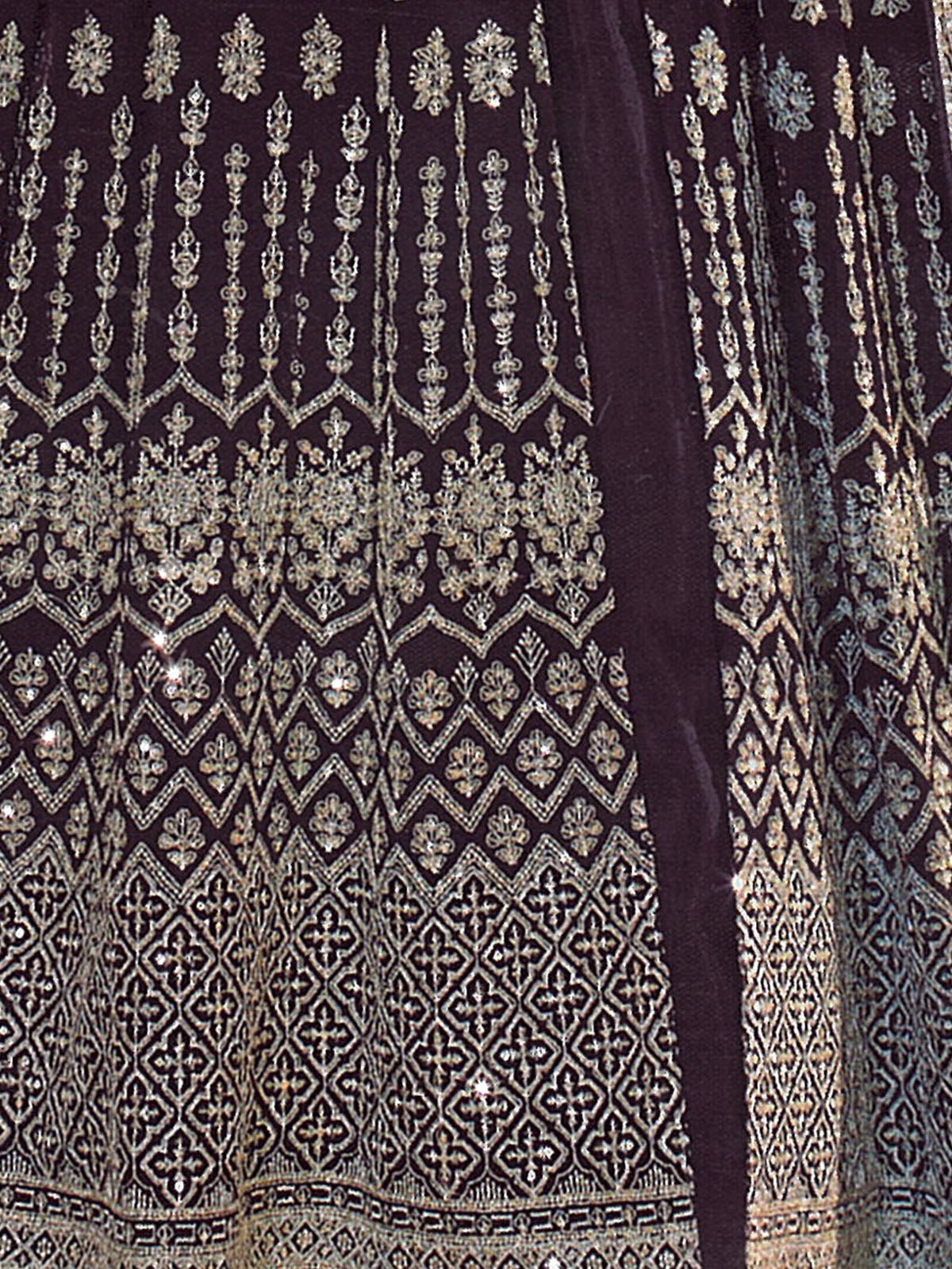Brown Georgette With Heavy Embroidery Work Long Top, Shantoon Material Bottom, Georgette Dupatta