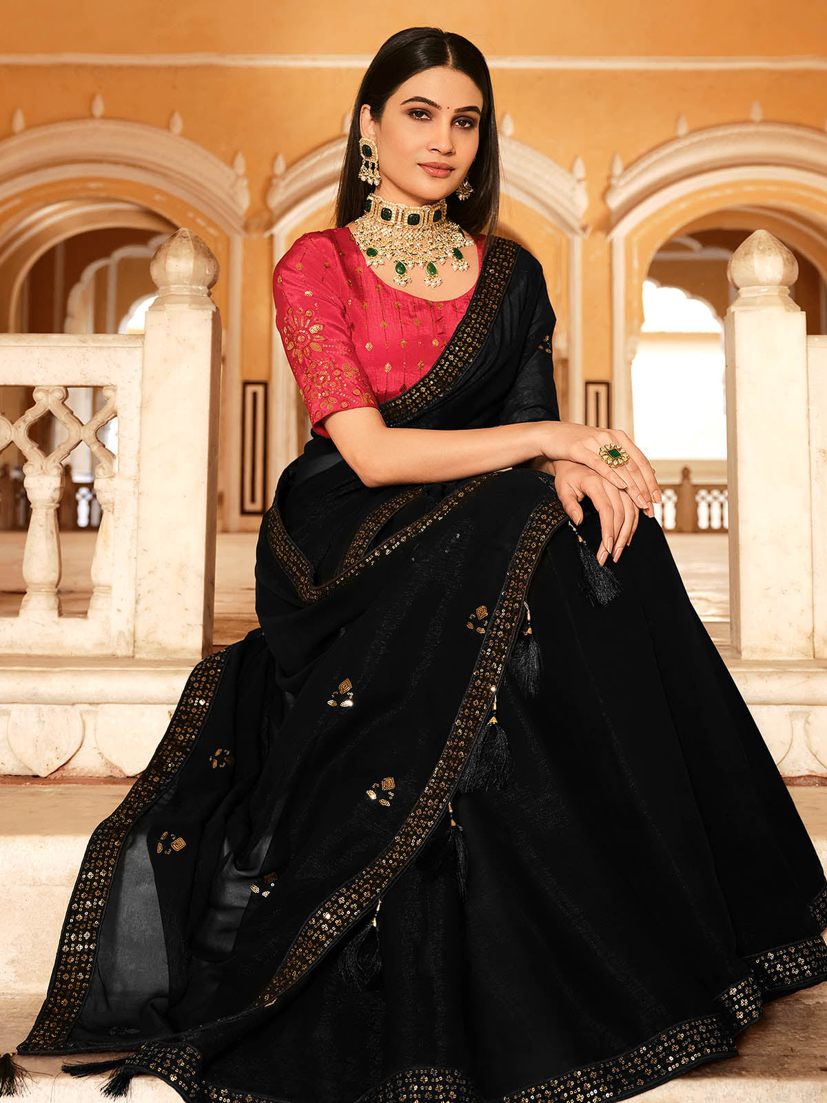 Feel extraordinary by adorning this Designer Chinon Saree. This Saree is highlighted with beautiful Thread, Sequence work as shown. This saree is comfortable to wear and care.