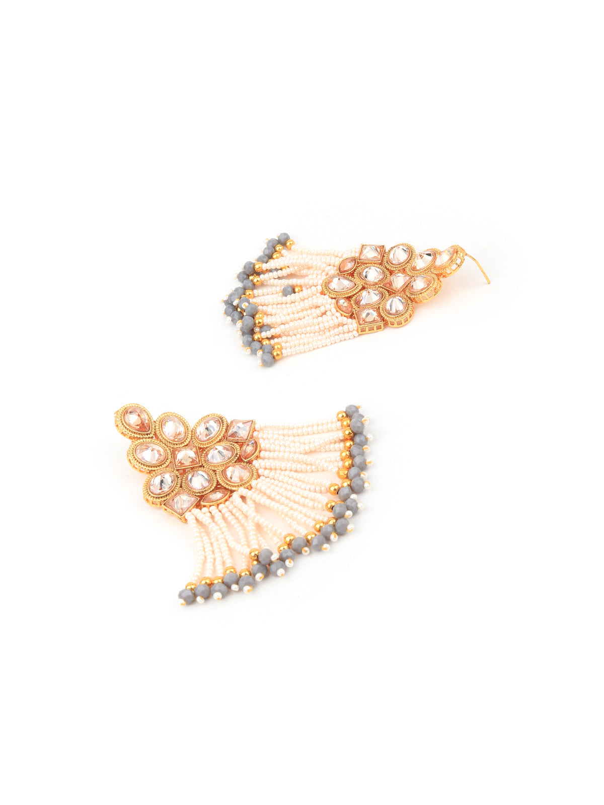 Grey beaded drop Kundan work earrings