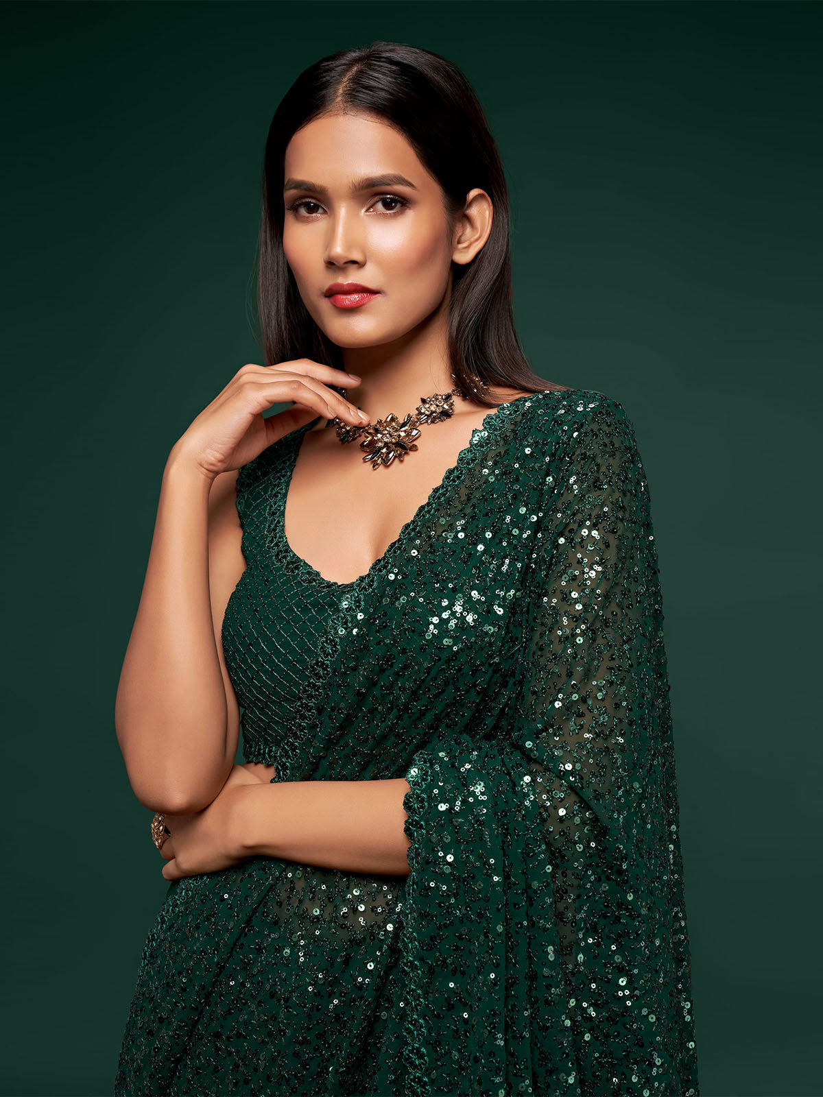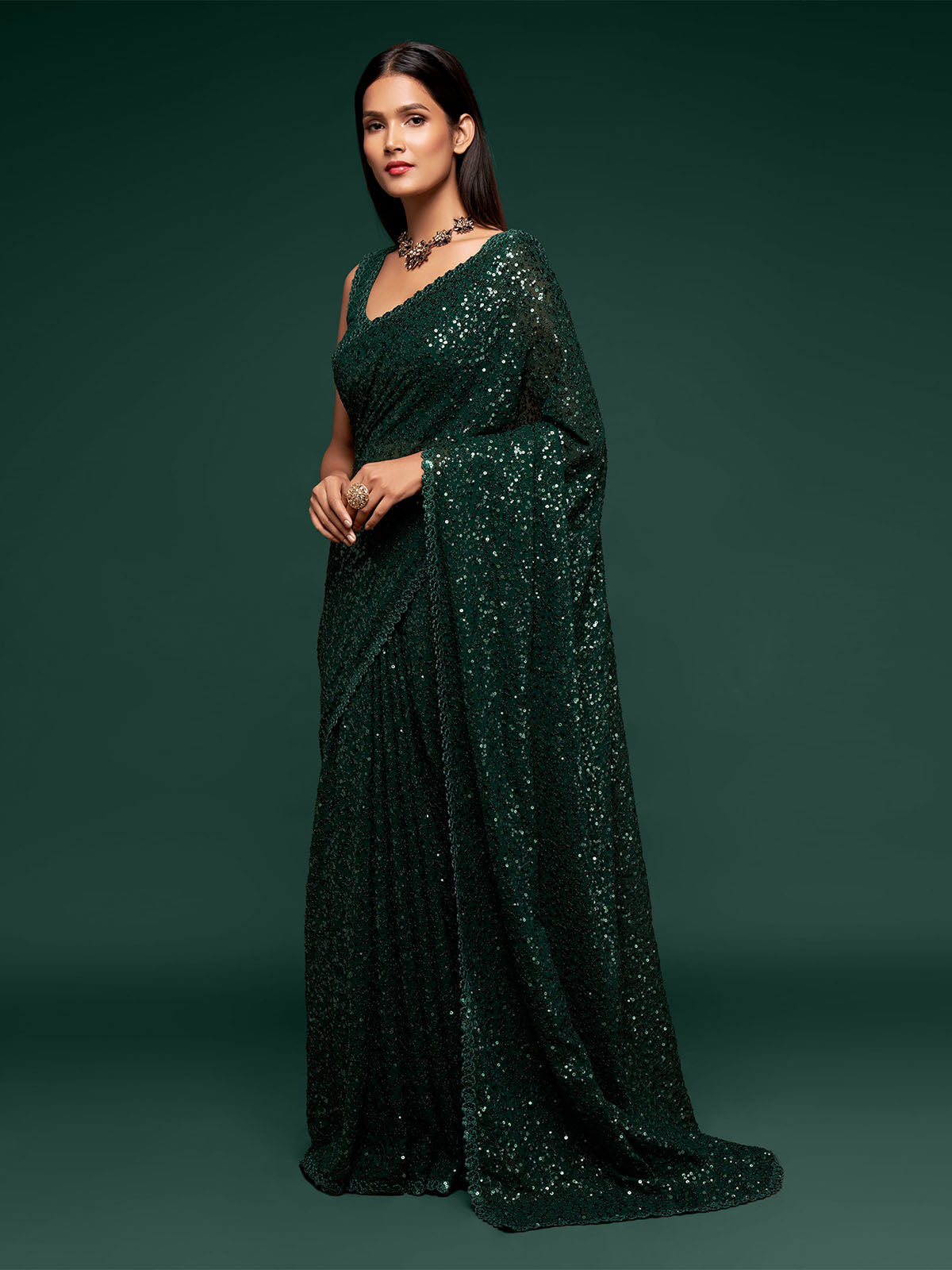 - Be an absolute royalty of splendor by adoring this designer sequins saree in georgette material embellished with all dual sequins work.