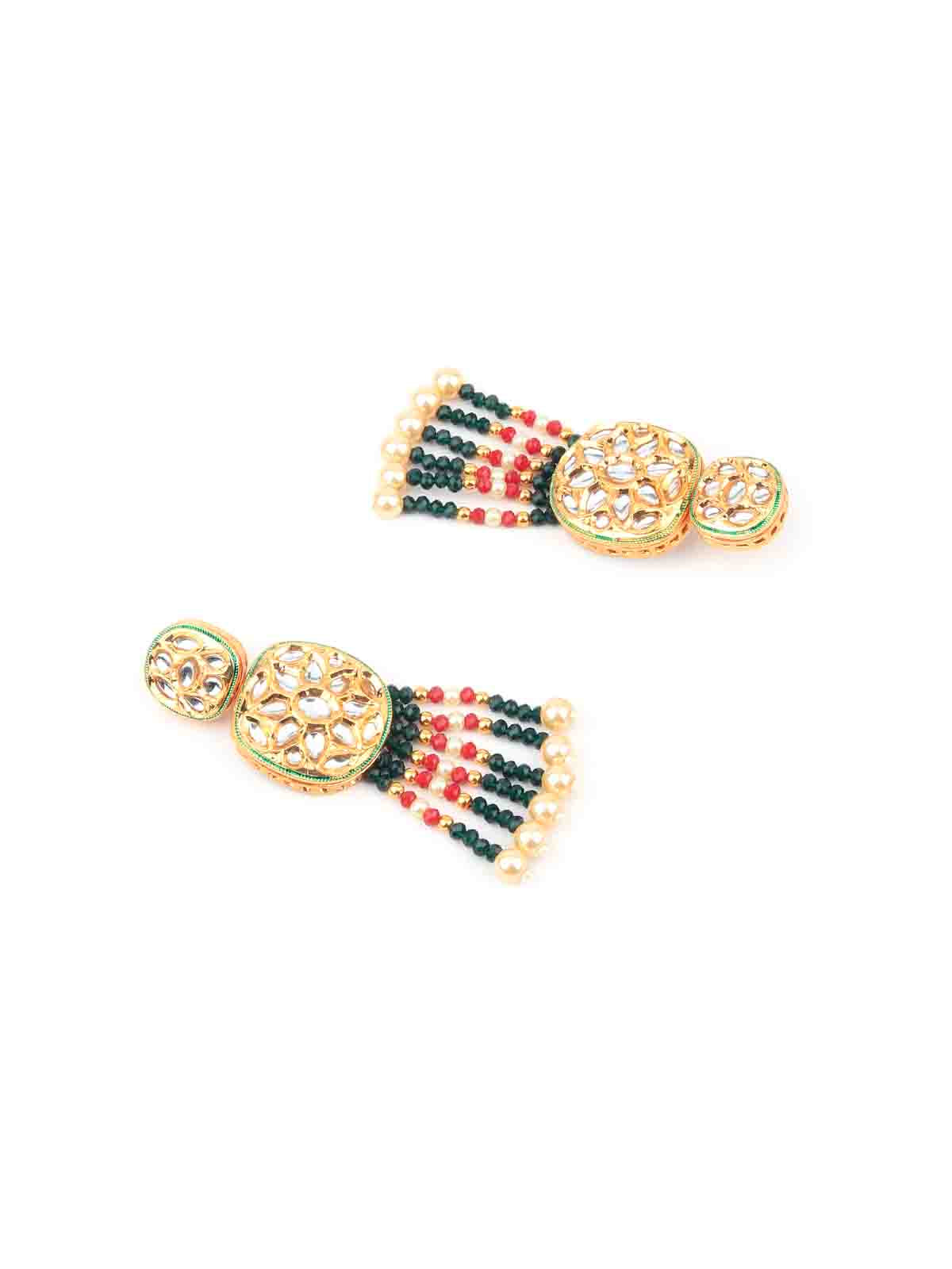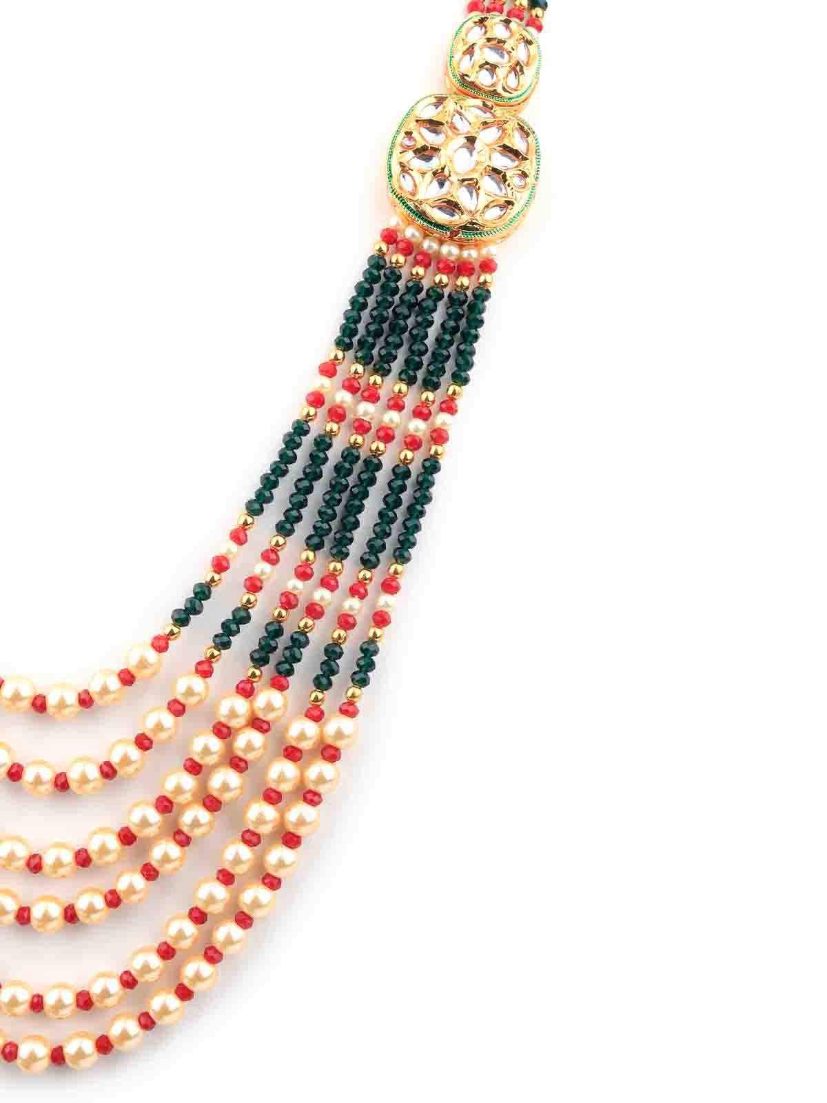 Spruce up your look with this white long double sided necklace set that comes with matching earrings. The intricately designed long neckpiece is decorated with faux stones and beads and is flanked by statement earrings. The set is made beautiful with stones, kundan and intricate work. 1. Intricate design 2. Studded with kundan 3. Compliments Indian look 3. Long Necklace Pattern 4. With Matching Earrings