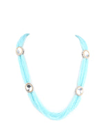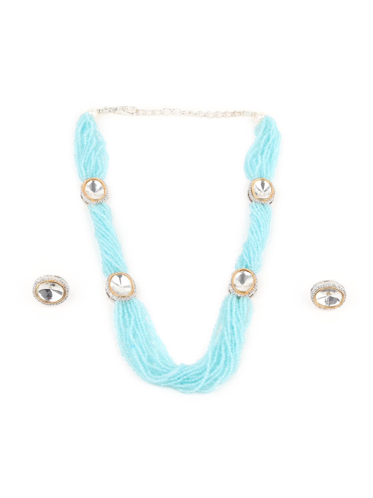 This gorgeous set of neck piece with stud earrings is a great accompaniment to your wedding or party outfit. The necklace has stones work on it. The collection and setting of faux stones lends grandeur to this piece. This is must have in your collection.