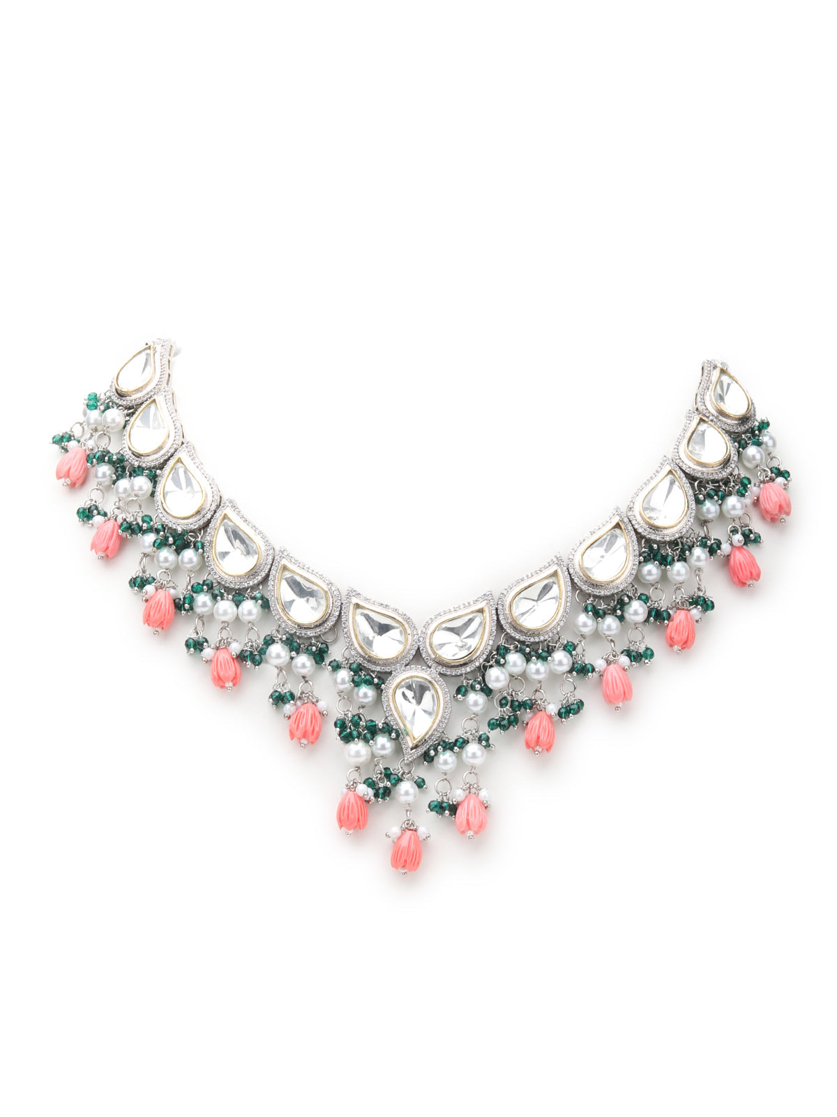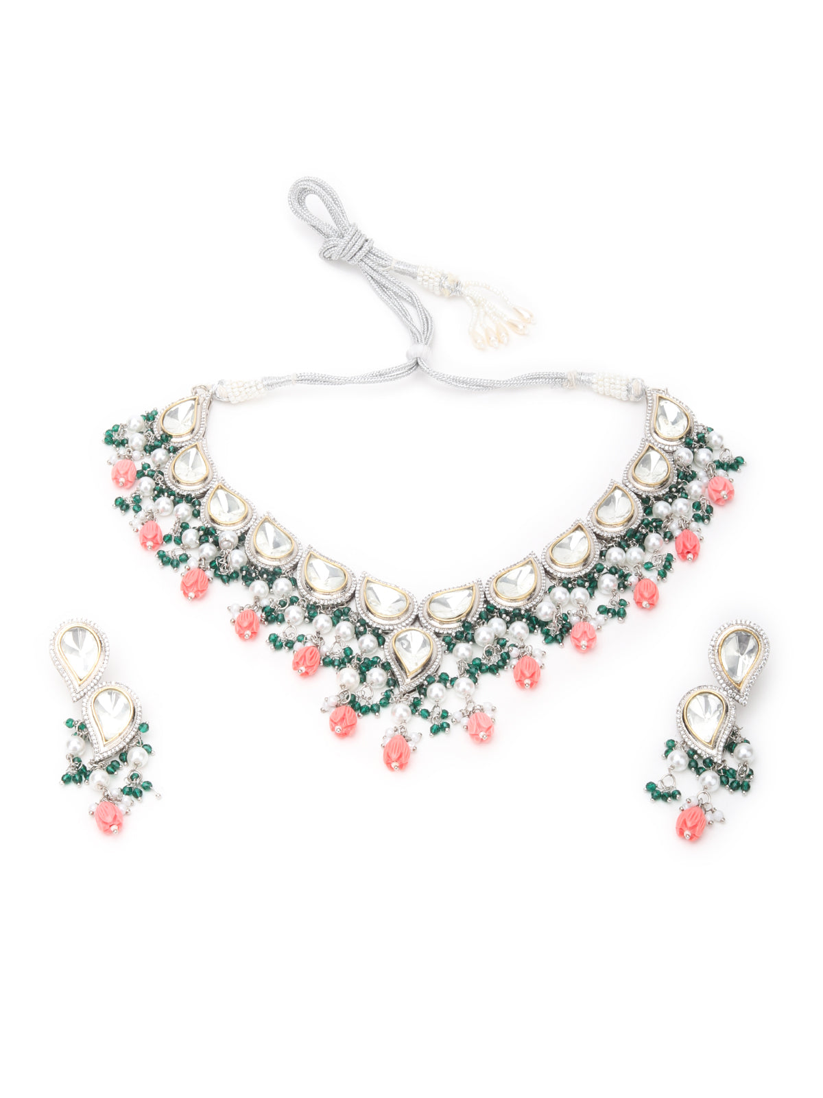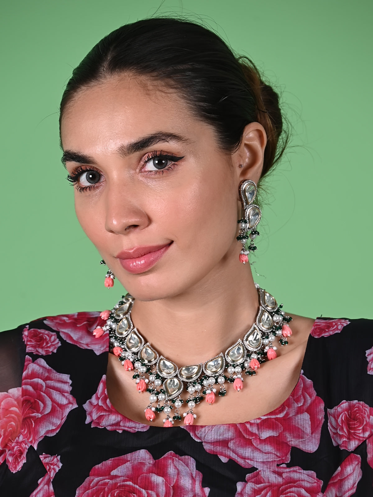Dazzling Green And Peach Kundan Choker Jewelry set