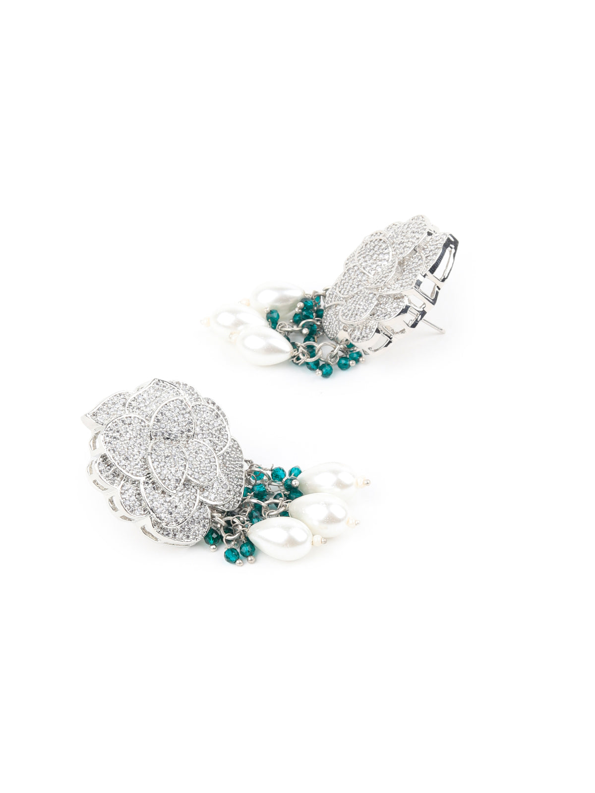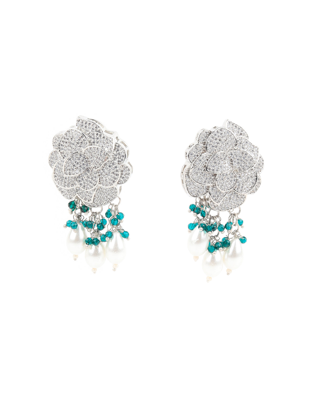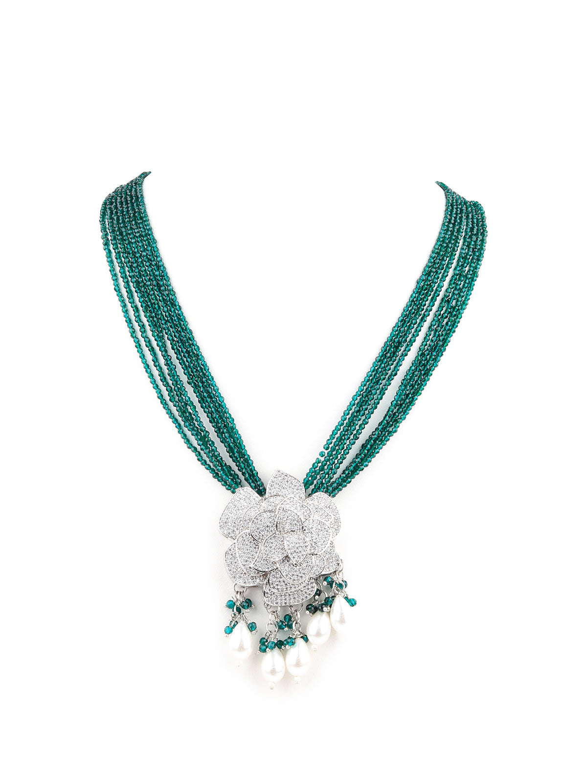 This gorgeous set of neck piece with stud earrings is a great accompaniment to your wedding or party outfit. The necklace has stones work on it. The neckpiece is flanked with matching earrings. The collection and setting of faux stones lends grandeur to this piece. This is must have in your collection.