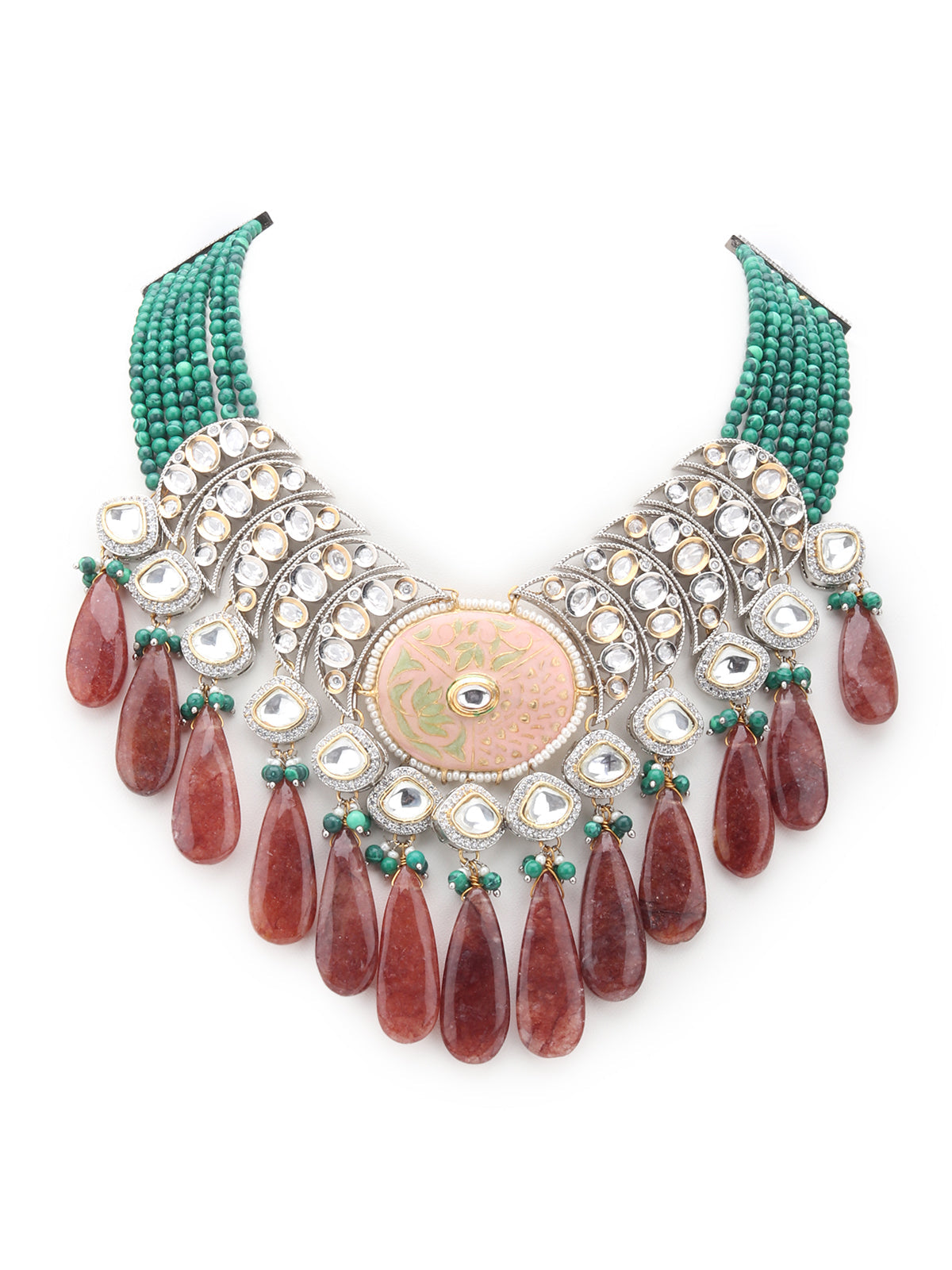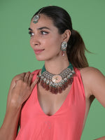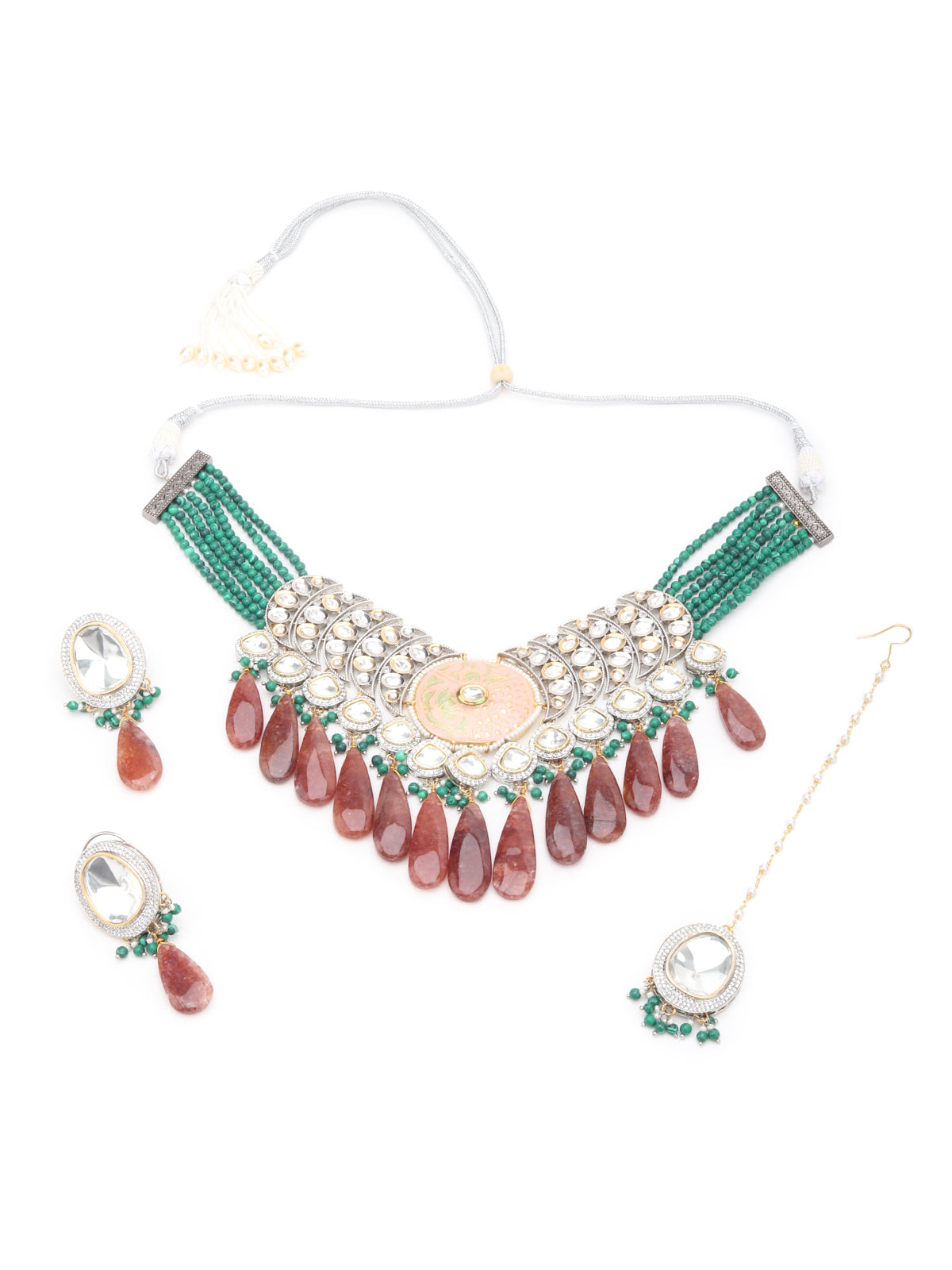 Dazzling Green And Brown Kundan Studded Layered Choker Jewelry set