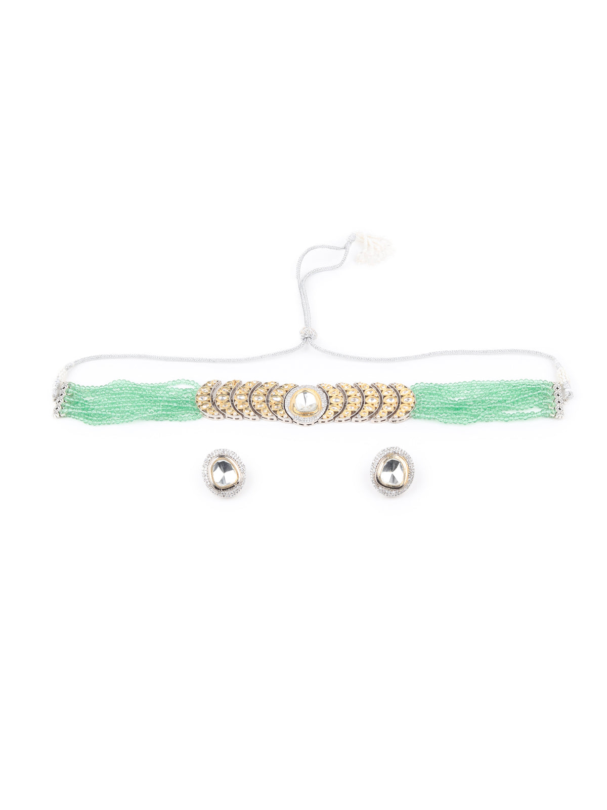 Dazzling White and Green Kundan Choker Jewelry set