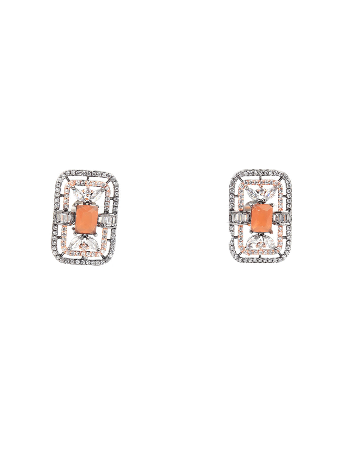 This gorgeous set of neck piece with stud earrings is a great accompaniment to your wedding or party outfit. The necklace has stones work on it. The neckpiece is flanked with matching earrings. The collection and setting of faux stones lends grandeur to this piece. This is must have in your collection.
