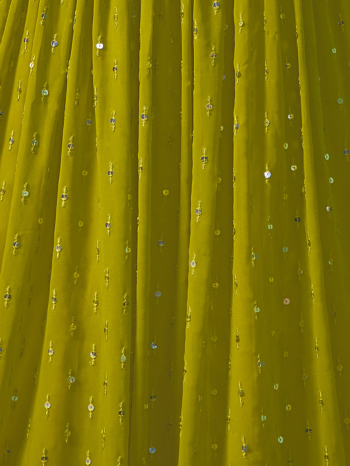Add light to the celebration called life beaming in this lehenga, choli and dupatta set.