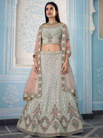 Add light to the celebration called life beaming in this lehenga, choli and dupatta set. Crafted on Georgette, the set is beautified with Thread, Zari, Zarkan .