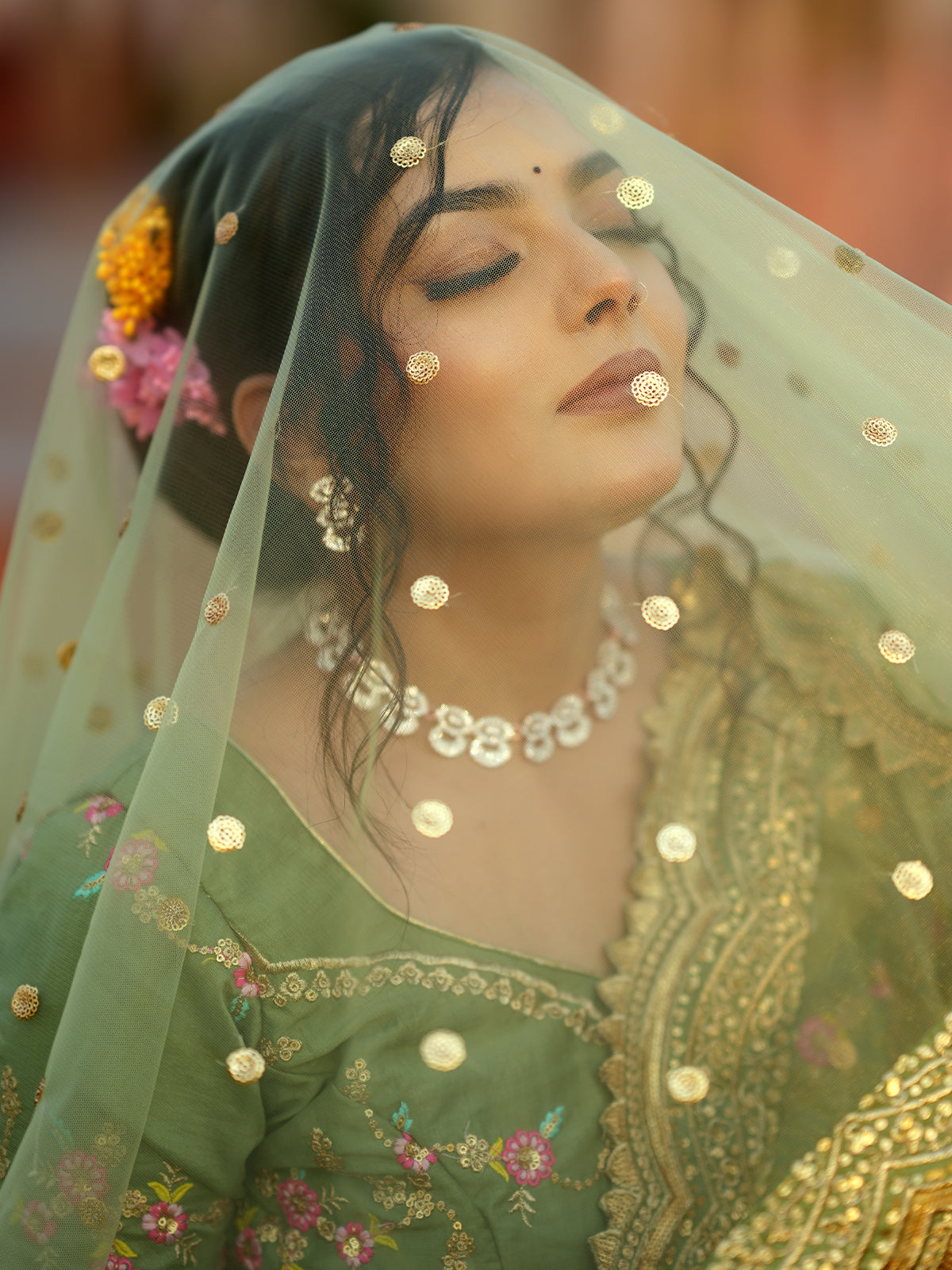 Rajwada Women Light Green Floral Semi Stitched Lehenga With Unstitched Blouse