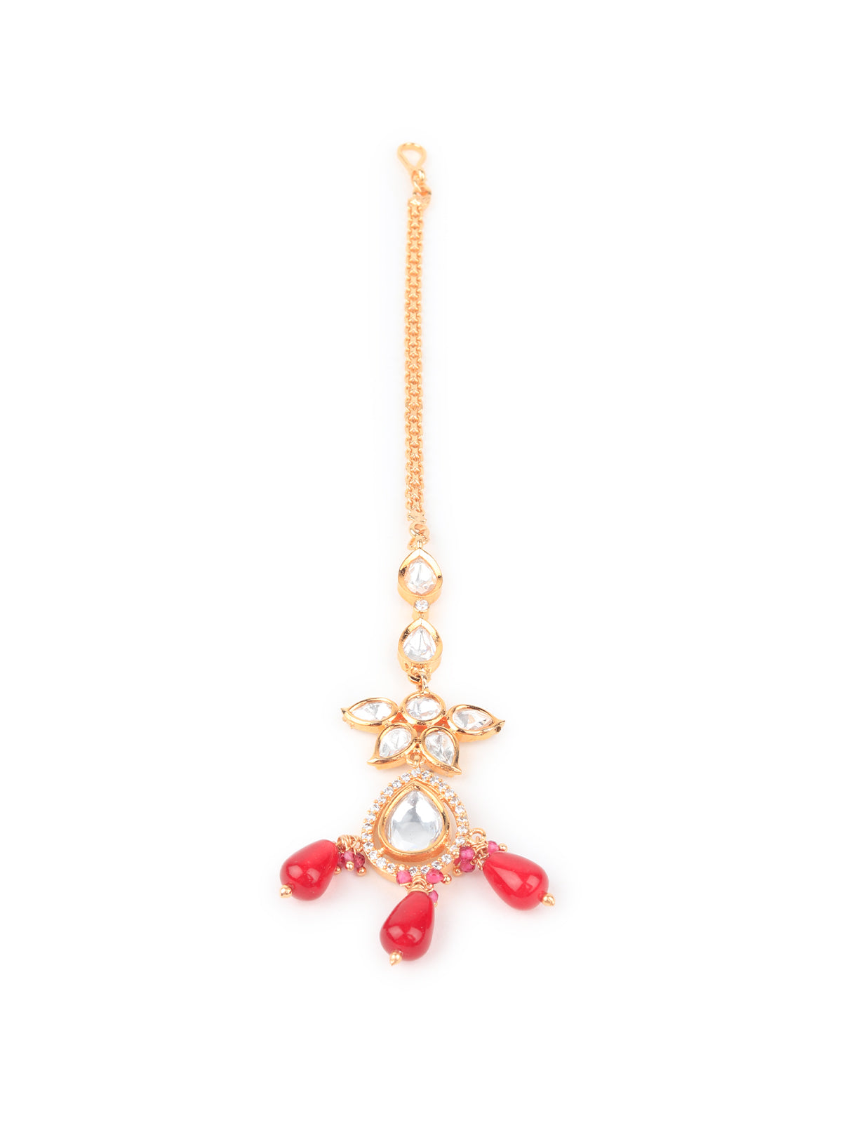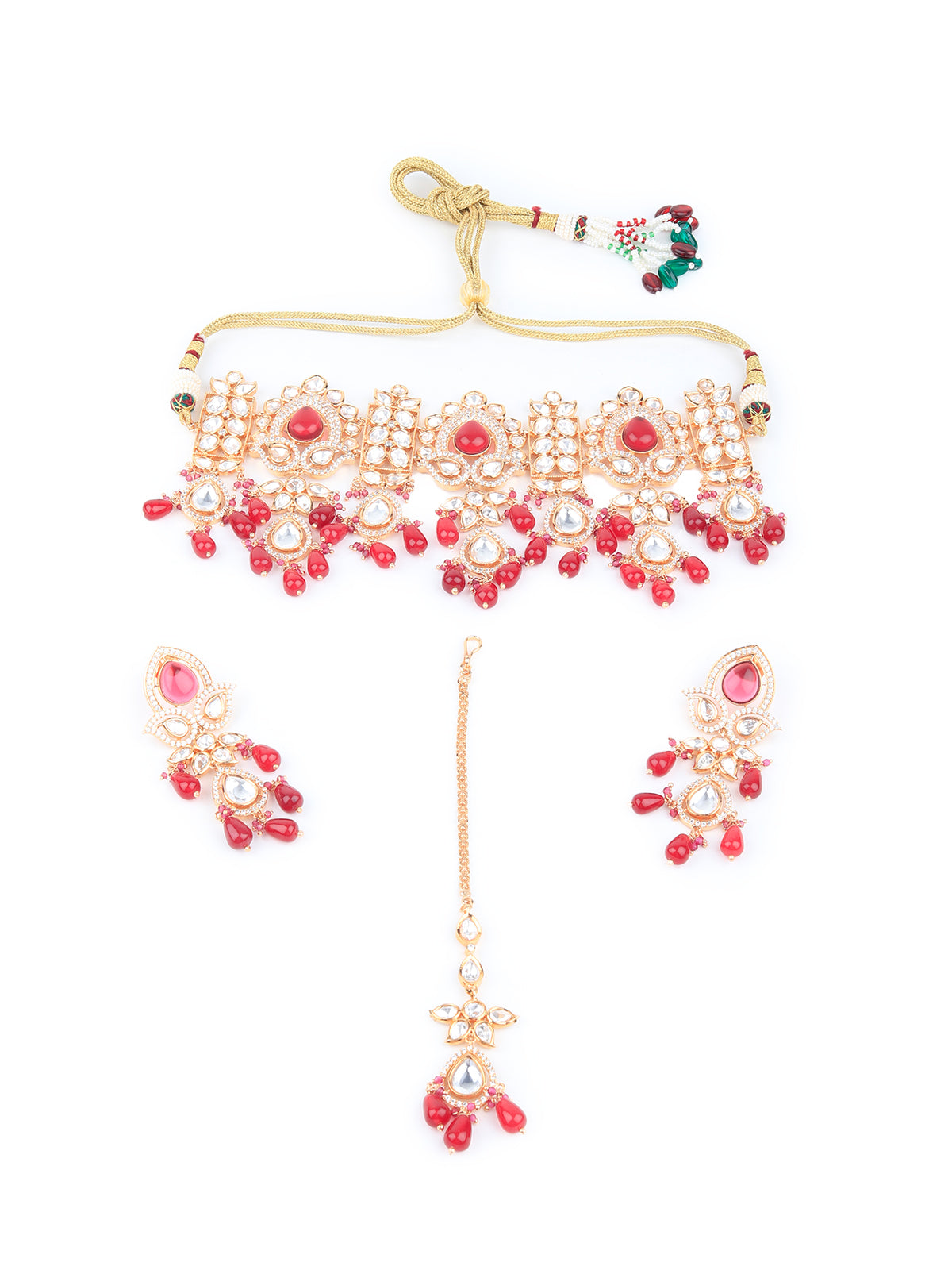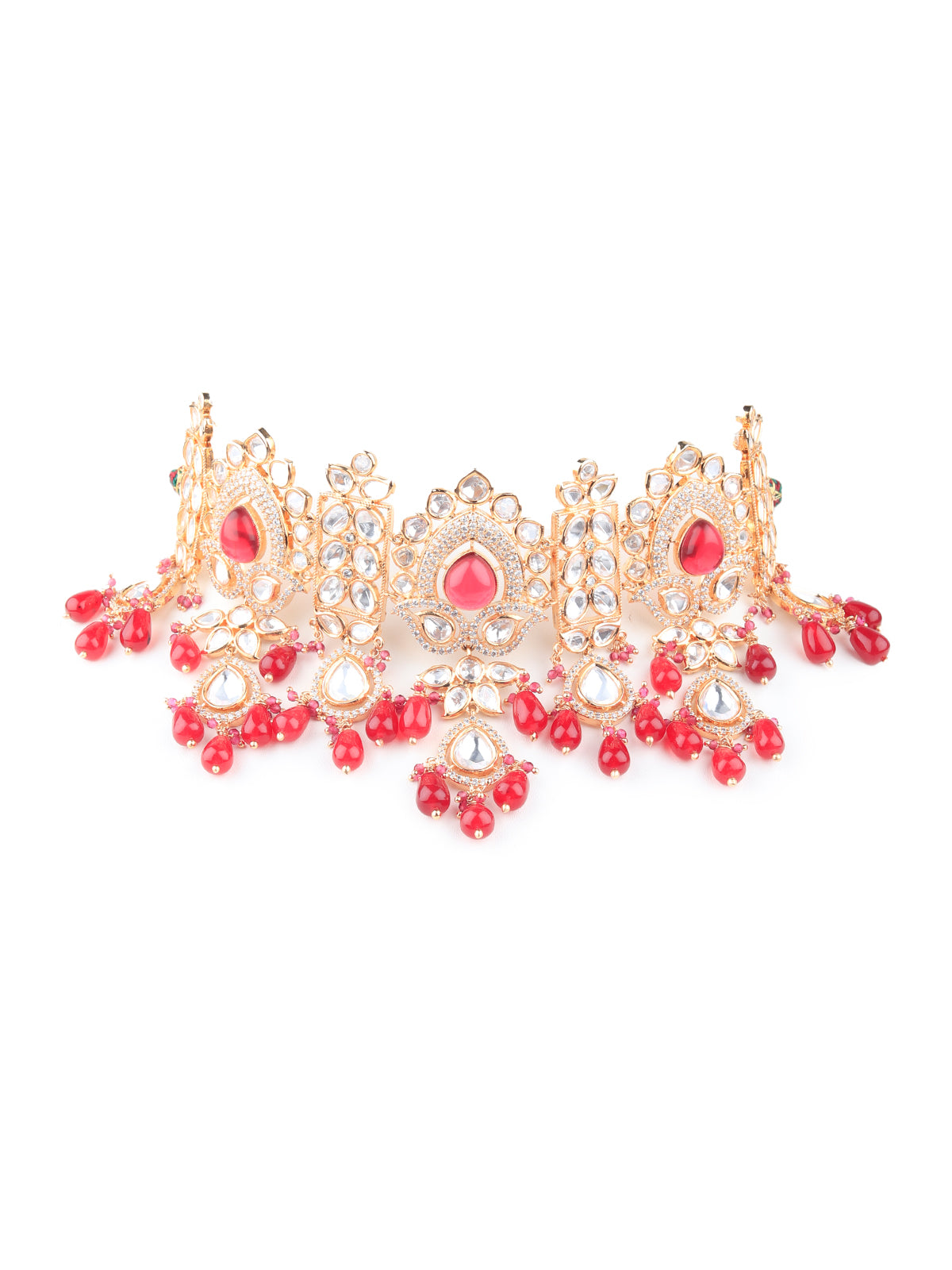 Spruce up your look with this mixed metal neckpiece set, containing royal looking choker necklace and matching earrings set. The neckpiece is decorated with Sea green faux stones that is flanked by equally statement earrings.