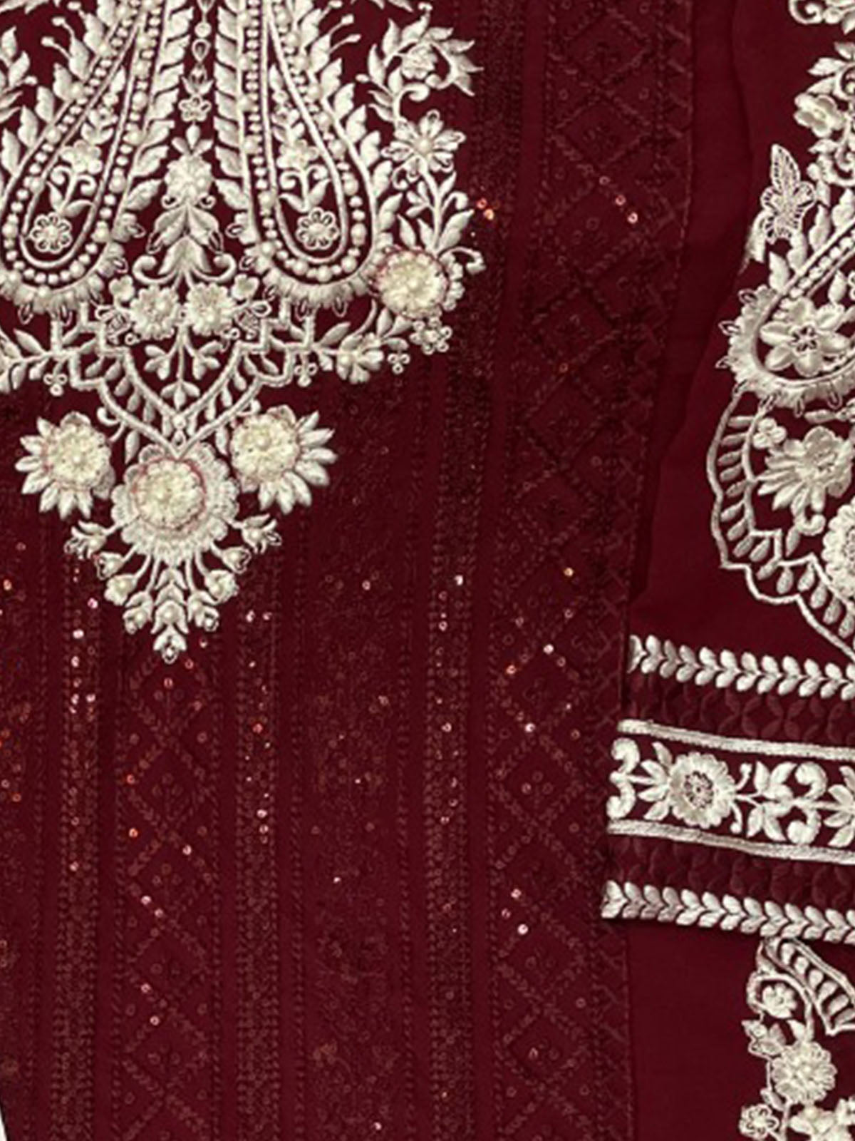 Real magnificence comes out of your dressing design with this Green colored partywear suit. This Faux Georgette suit is beautifully adorned with designer Embroidery Work as shown which makes it appear graceful. This semi-stitched suit comes along with santoon bottom, inner and embroidery plus four side lace Georgette Dupatta. women can buy this ethnic suit to wear for their festivals, upcoming parties functions, receptions and family occasions, where you want to be the limelight.
