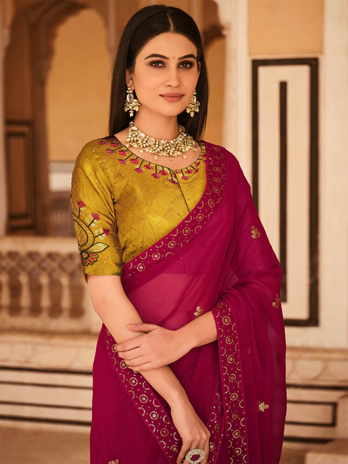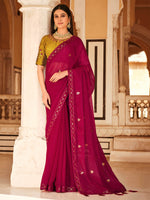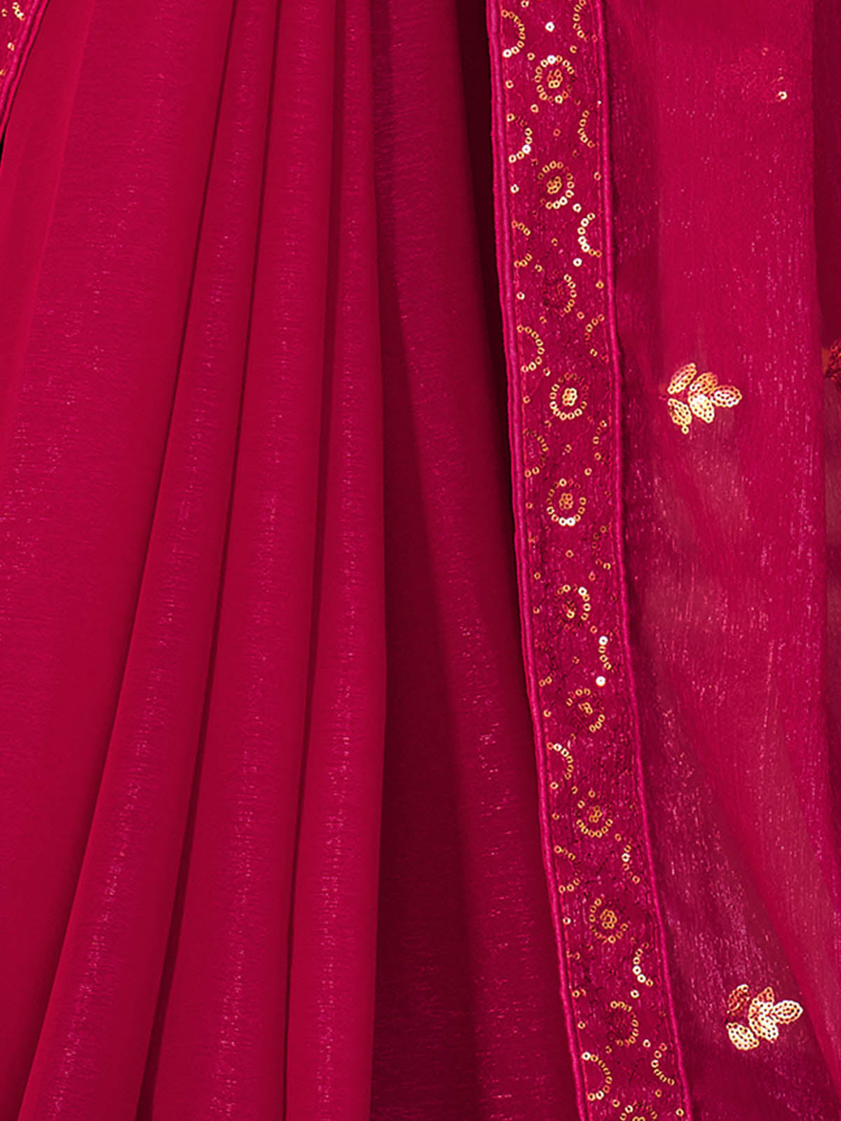 Feel extraordinary by adorning this Designer Chinon Saree. This Saree is highlighted with beautiful Thread, Sequence work as shown. This saree is comfortable to wear and care.