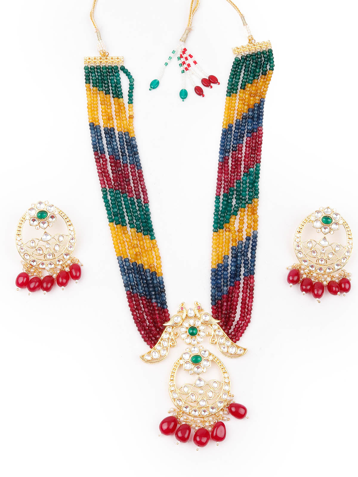 Rajwada Women Multicolored And Gold Long Necklace Set