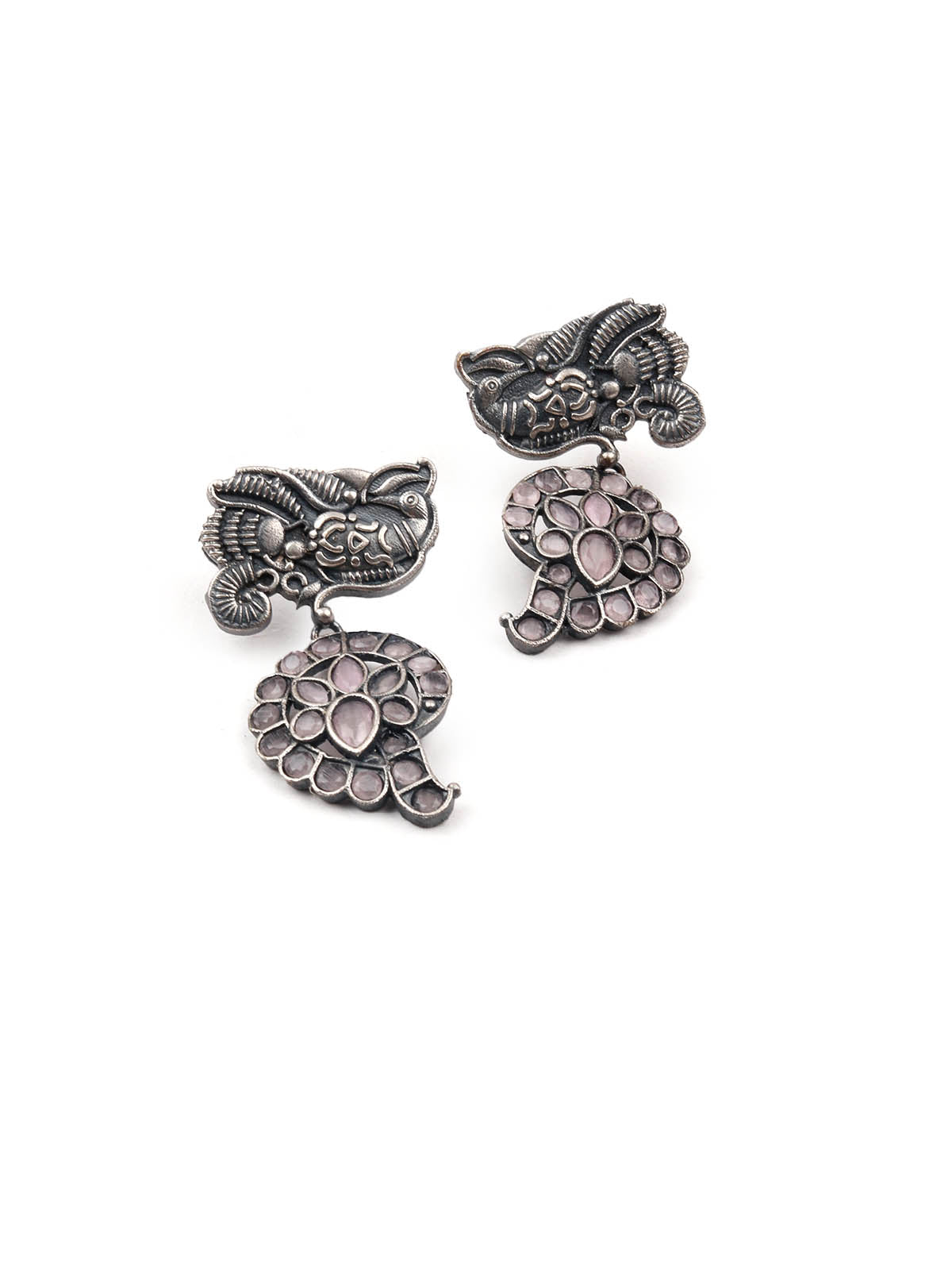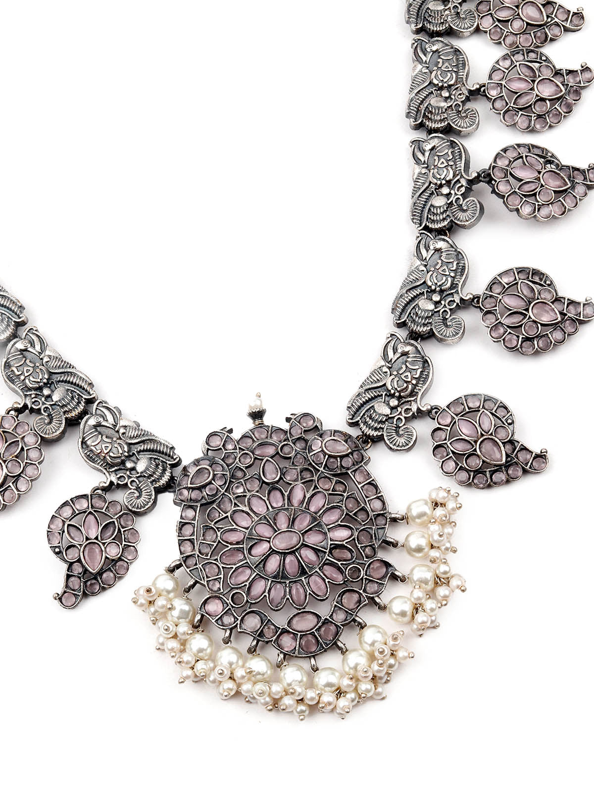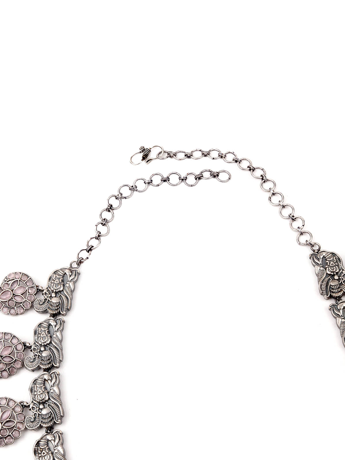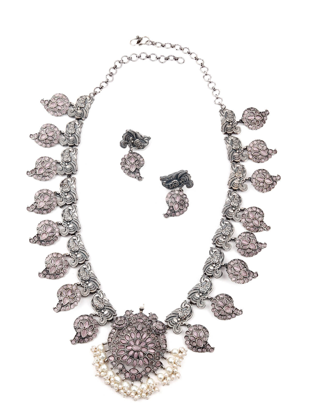 Oxidised Silver Stone Studded Long Necklace Set