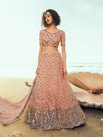 Add light to the celebration called life beaming in this lehenga, choli and dupatta set. Crafted on Soft Net, the set is beautified Sequins .