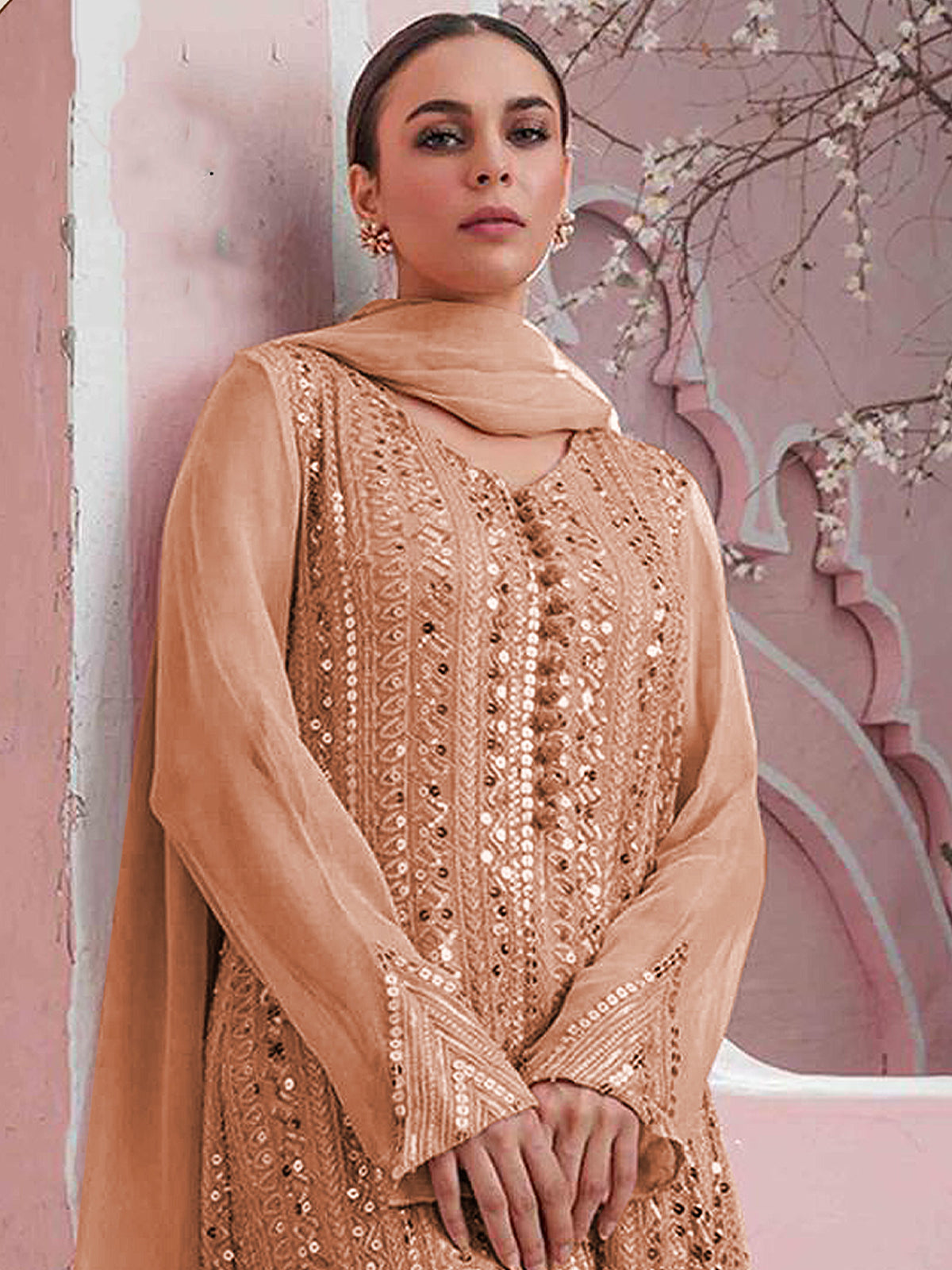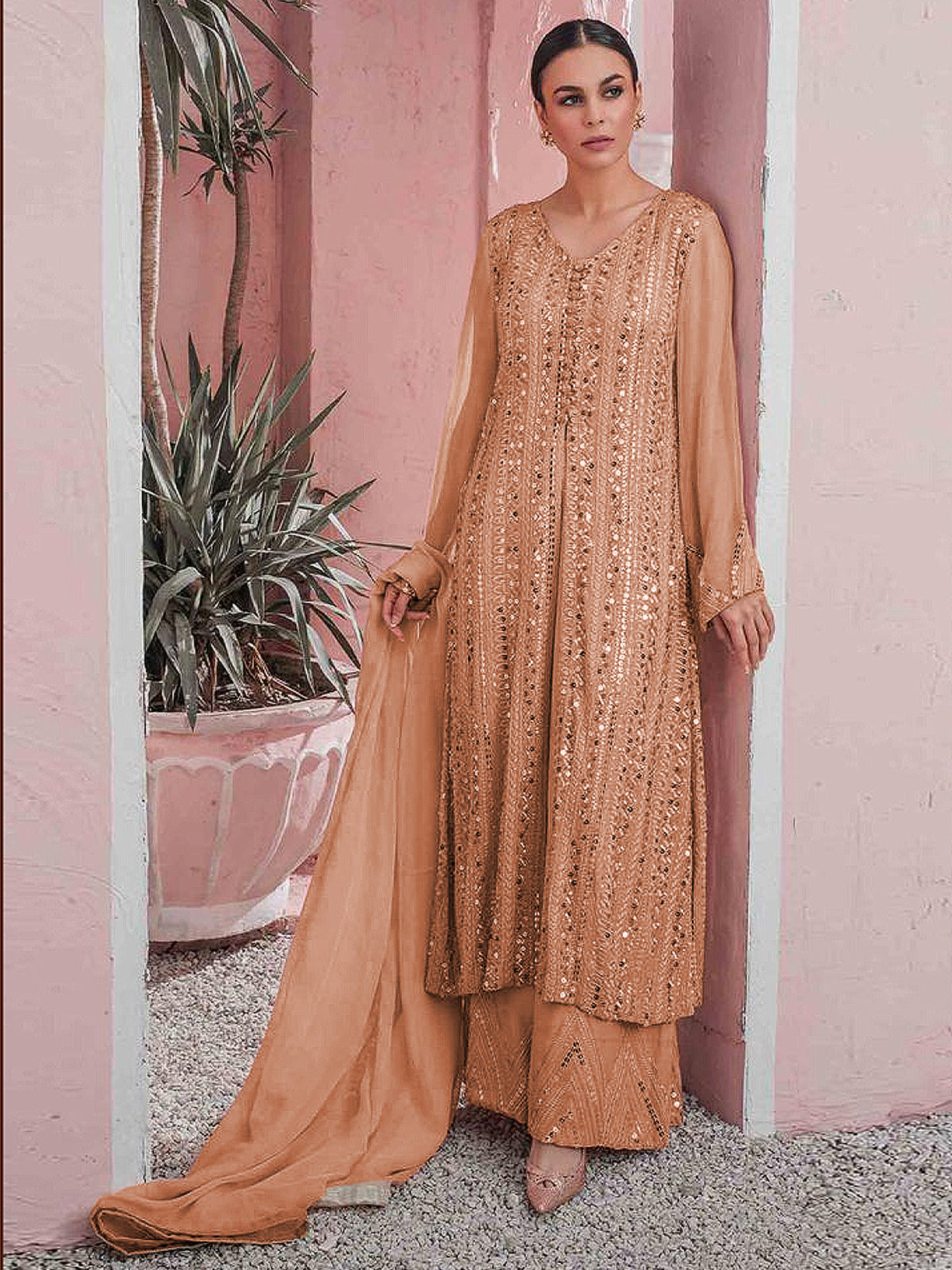 Rajwada Women Orange Color Party Wear Georgette Semi Stitched Suit