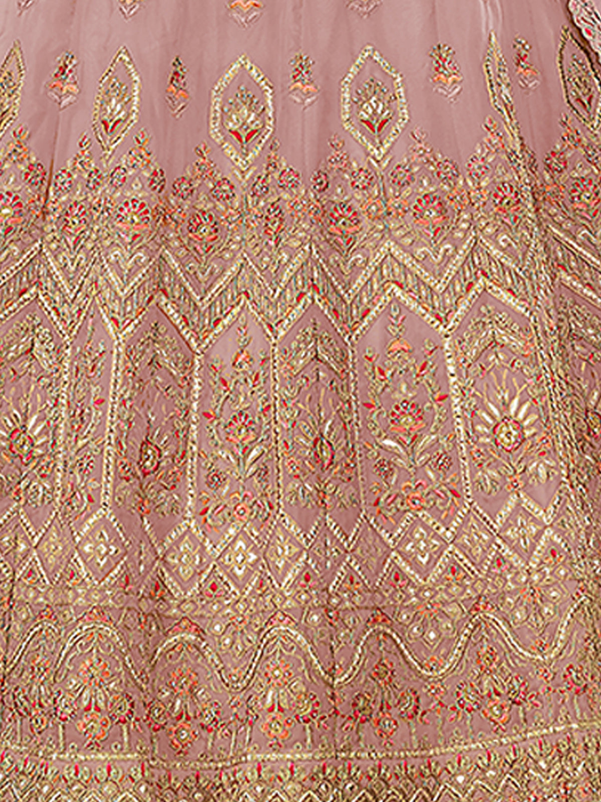 Add light to the celebration called life beaming in this lehenga, choli and dupatta set. Crafted on Organza, the set is beautified with Gota, Thread, Zarkan work.
