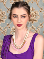 Spruce up your look with this lovely necklace, that comes with matching earrings. The intricately designed long neckpiece is beautified with embellishments and is flanked by statement earrings. The set is beautified with faux stones, and intricate work. 1. Intricate design 2. Decorated with White Stones Studded on Gold Imitation 3. Compliments Indian look 3. Long Necklace Pattern 4. With Matching Earrings