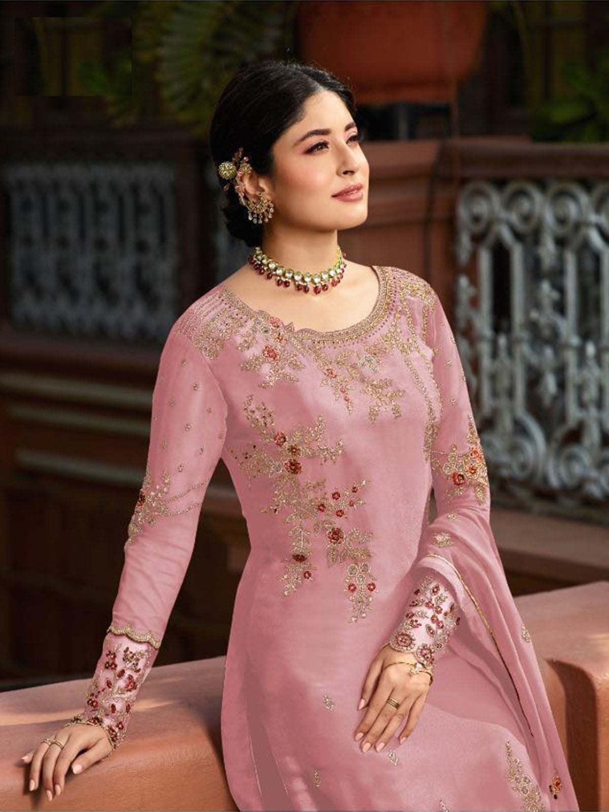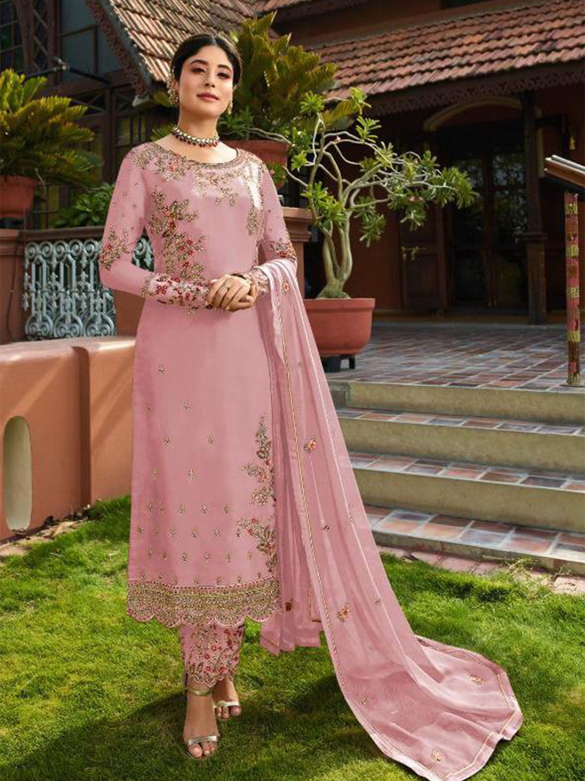 Pink Georgette straight salwar kameez. The floral, lace, multi and resham work personifies the entire appearance. Comes with matching bottom and dupatta