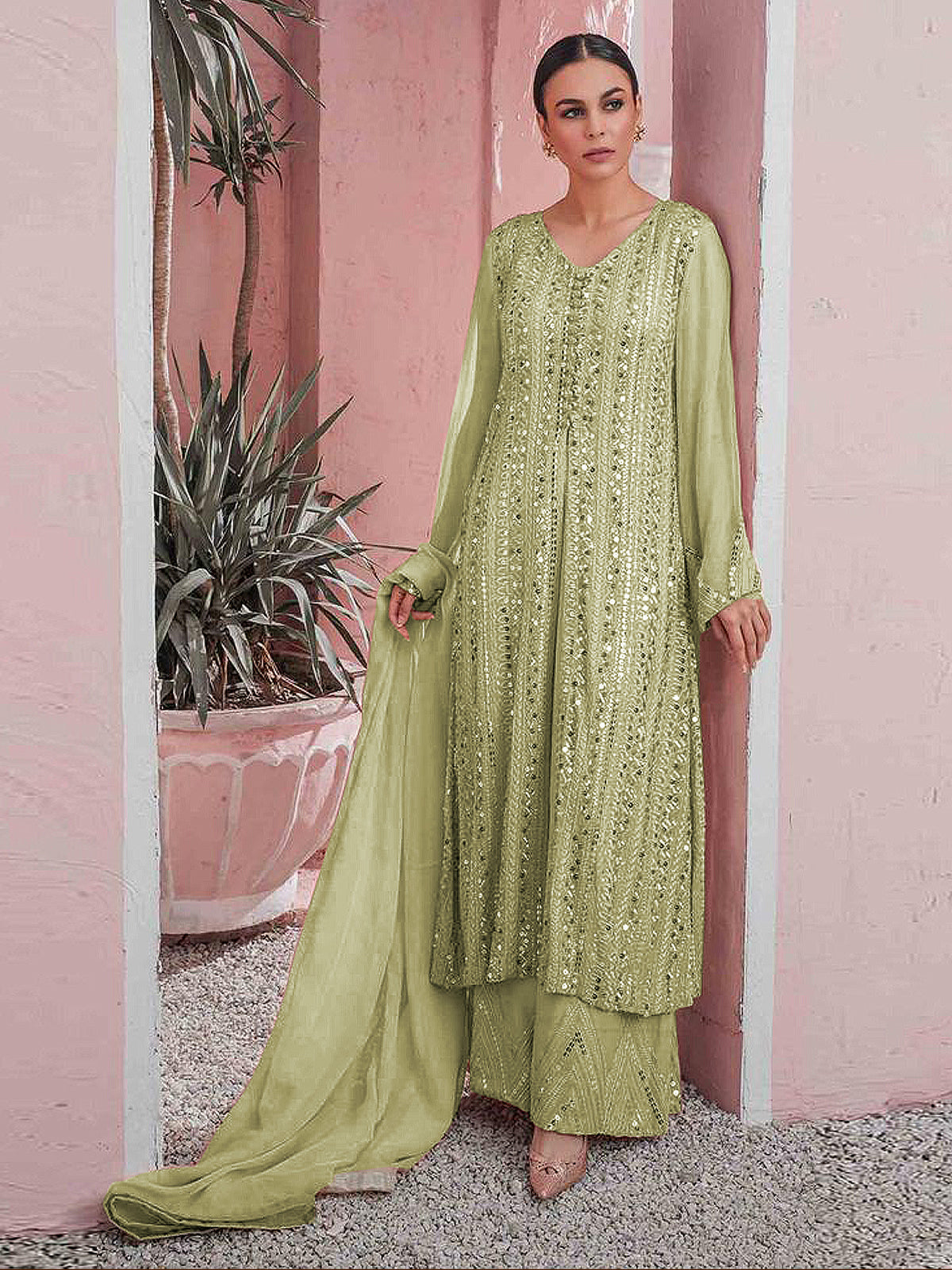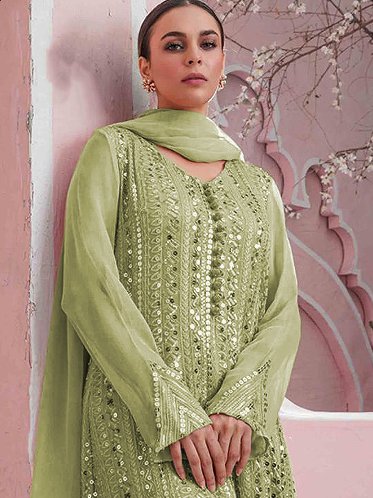 Rajwada Women Green Color Party Wear Georgette Semi Stitched Suit