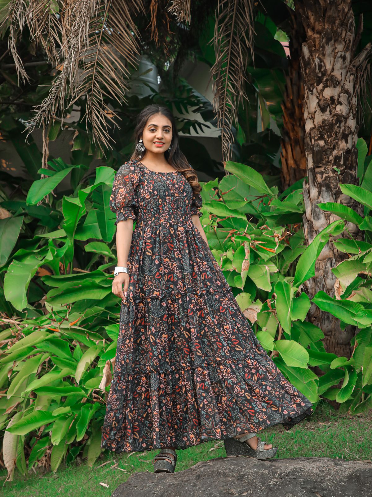 Embrace versatility with the Rajwada Indo Western Dresses collection. It offers a stylish and adaptable ensemble that can be worn together with matching jewelry and heels for various occasions.