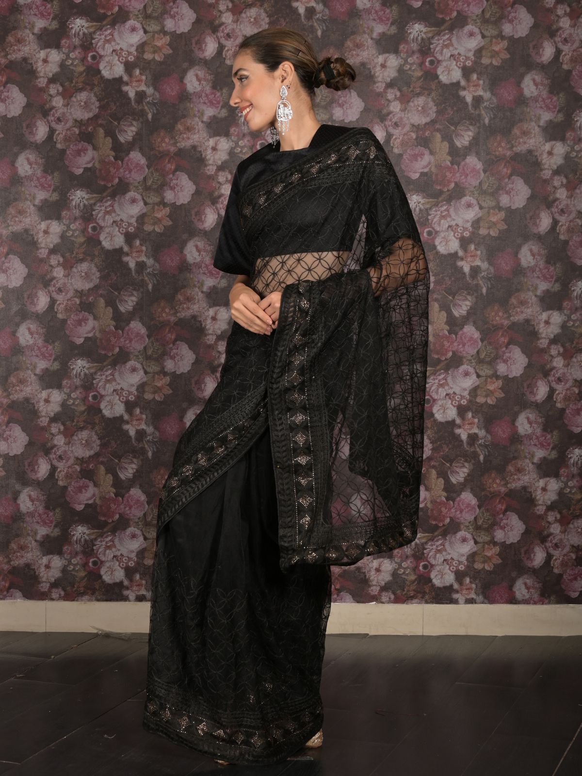 Elevate your elegance with Rajwada's exquisite saree. This masterpiece of craftsmanship features intricate design that adds a touch of timeless beauty to your look. Made from premium fabric, this saree is perfect for special occasions, exuding luxury and charm with every drape. Shop now and step into the spotlight! This saree contains different blouse piece (please check the product description), blouse given in the picture is for only photography purpose.