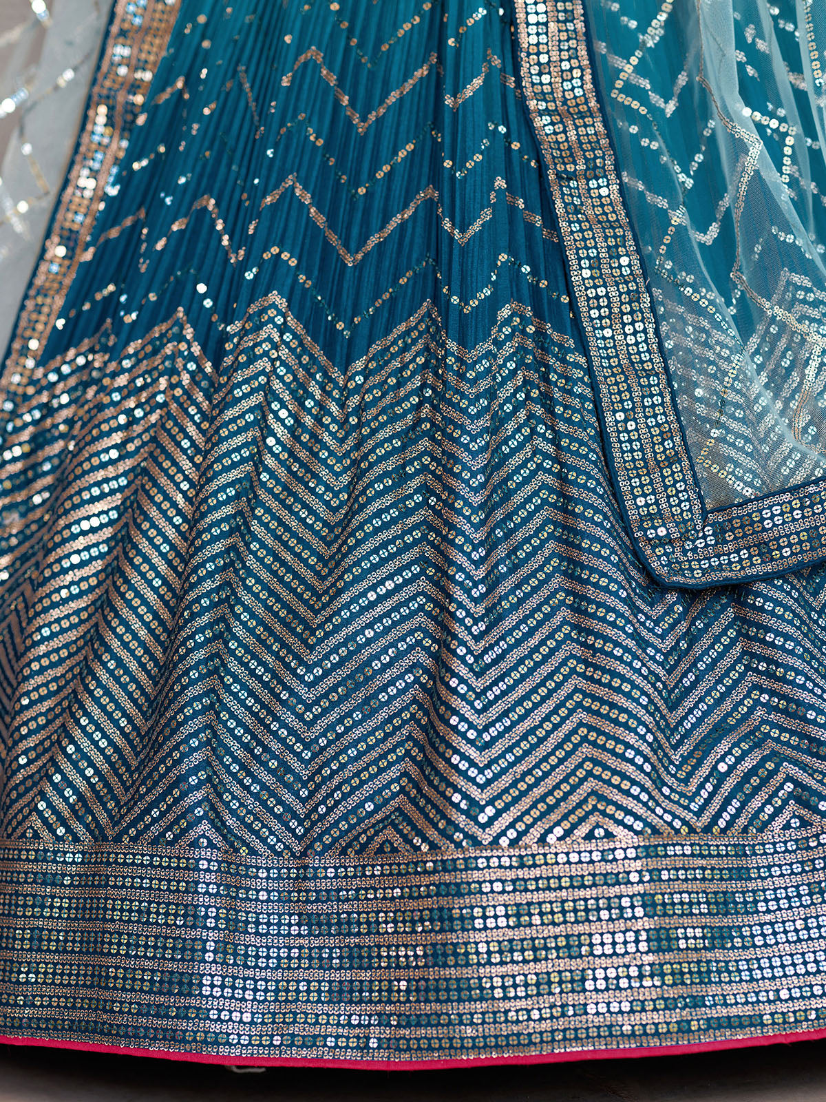Re-Define Your Style In The Beautifully Sequence And Embroidery Work Lehenga. Match It With A Clutch And A Pair Of Heeled Sandals And You Are Ready To Slay.