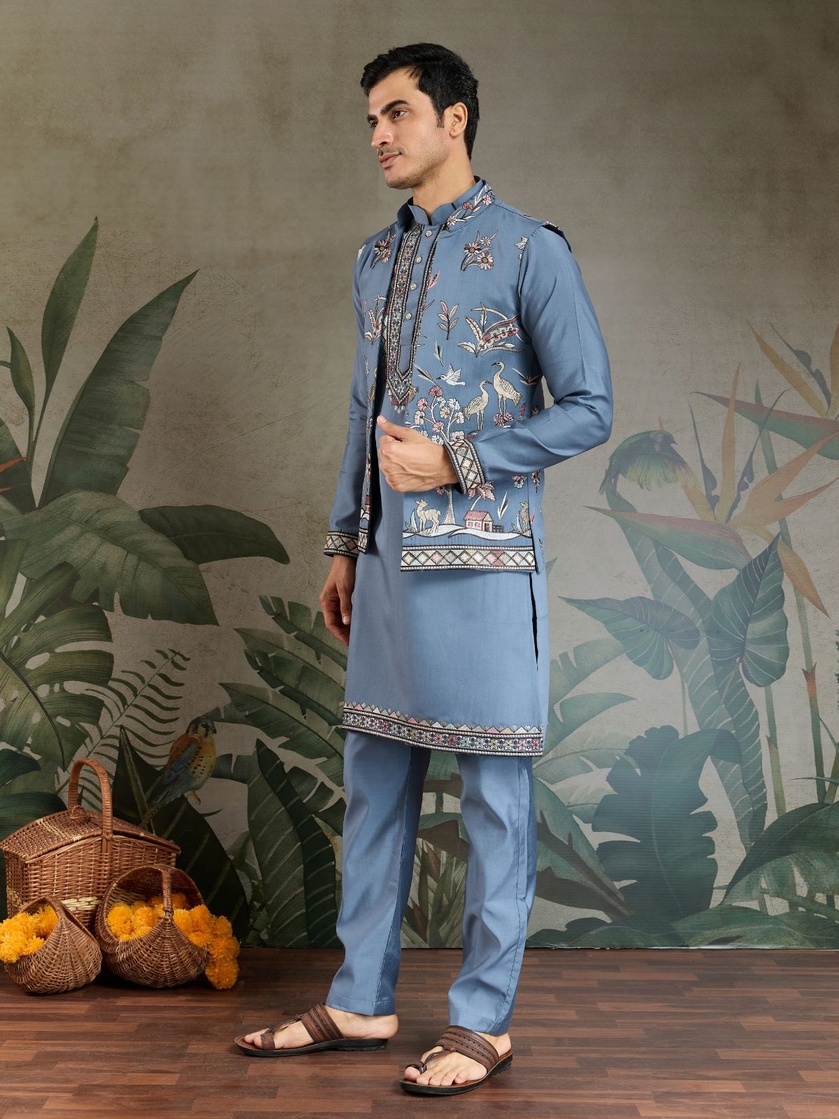 Embrace timeless elegance with this traditional men's kurta set. Crafted with premium fabrics and intricate detailing, it exudes sophistication. Ideal for cultural celebrations or casual events, offering comfort and style in equal measure.