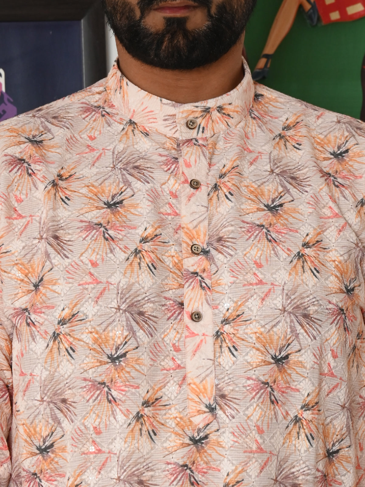 Embrace timeless elegance with this traditional men's kurta set. Crafted with premium fabrics and intricate detailing, it exudes sophistication. Ideal for cultural celebrations or casual events, offering comfort and style in equal measure.