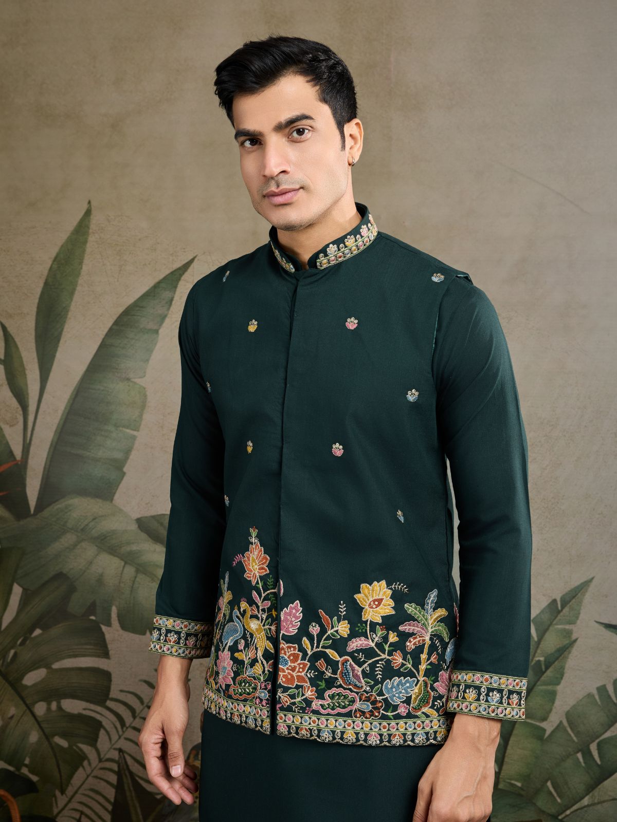 Embrace Timeless Elegance With This Traditional Men's Kurta With Jacket, Ideal For Cultural Celebrations Or Casual Events, Offering Comfort And Style In Equal Measure.
