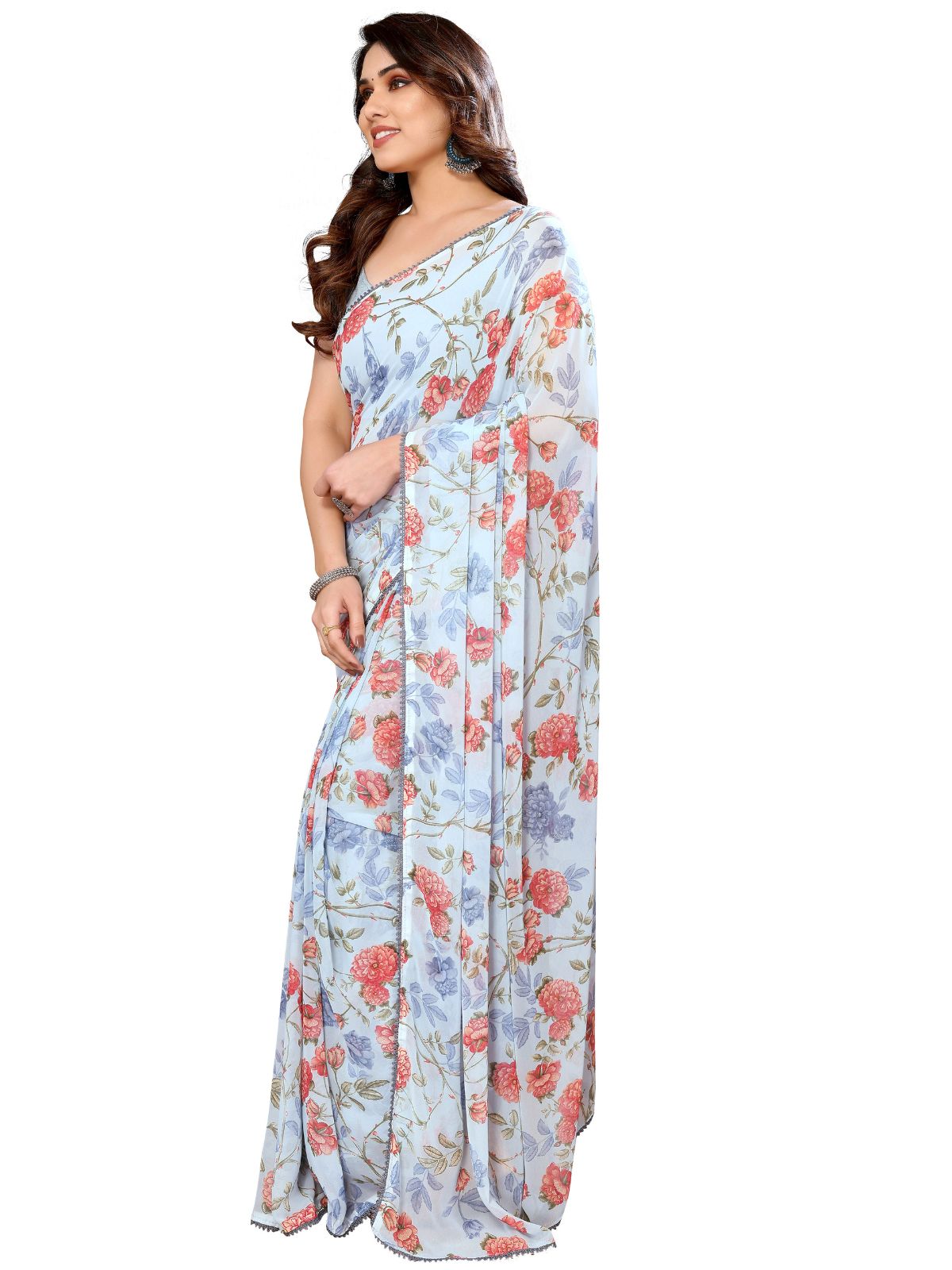 Elevate your style effortlessly with our Printed Ready-to-Wear Saree adorned with delicate lace details. Effortless and chic, this ensemble is perfect for those who appreciate convenience without compromising on elegance. Ready to dazzle in no time.