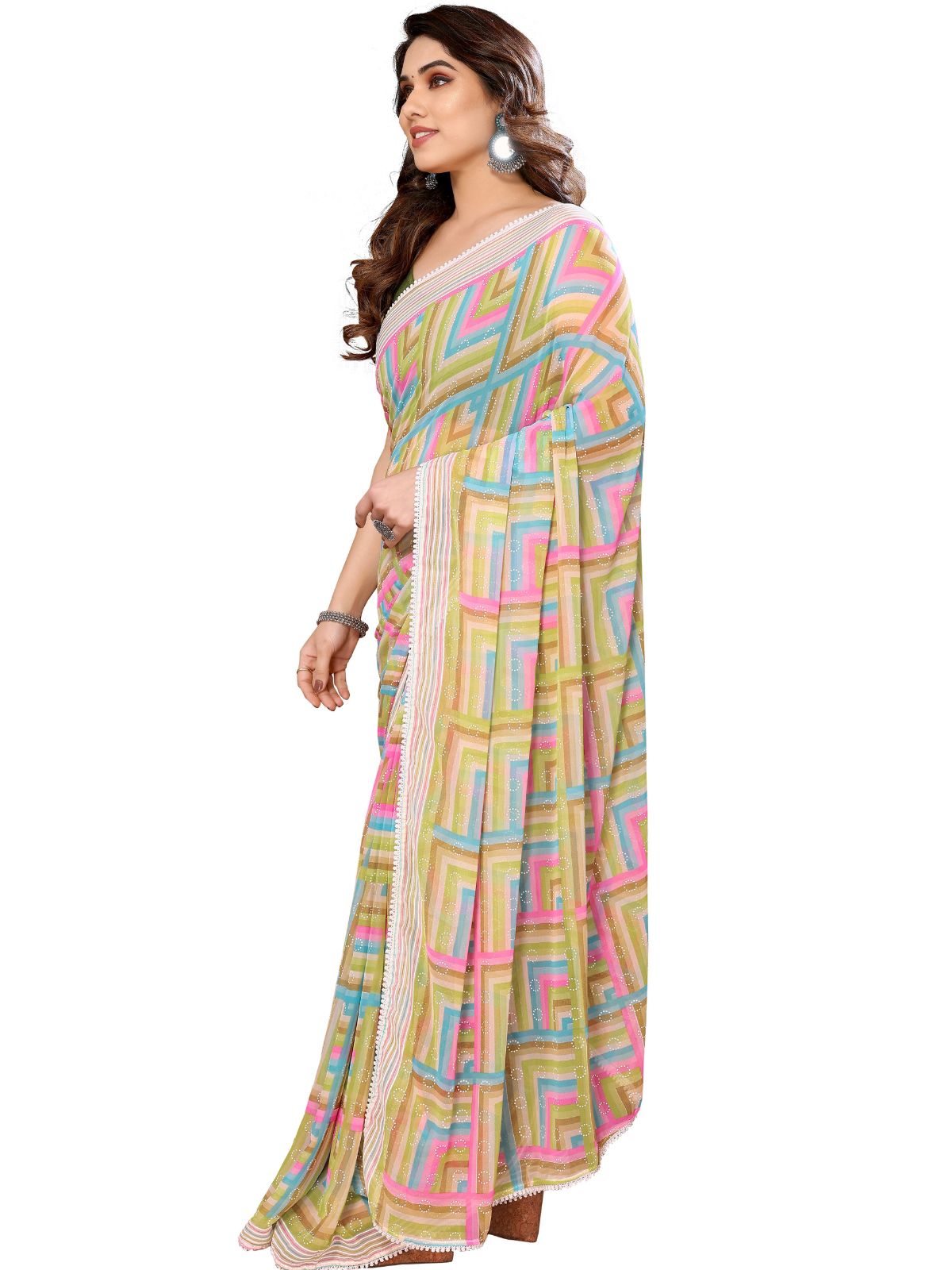 Elevate your style effortlessly with our Printed Ready-to-Wear Saree adorned with delicate lace details. Effortless and chic, this ensemble is perfect for those who appreciate convenience without compromising on elegance. Ready to dazzle in no time.