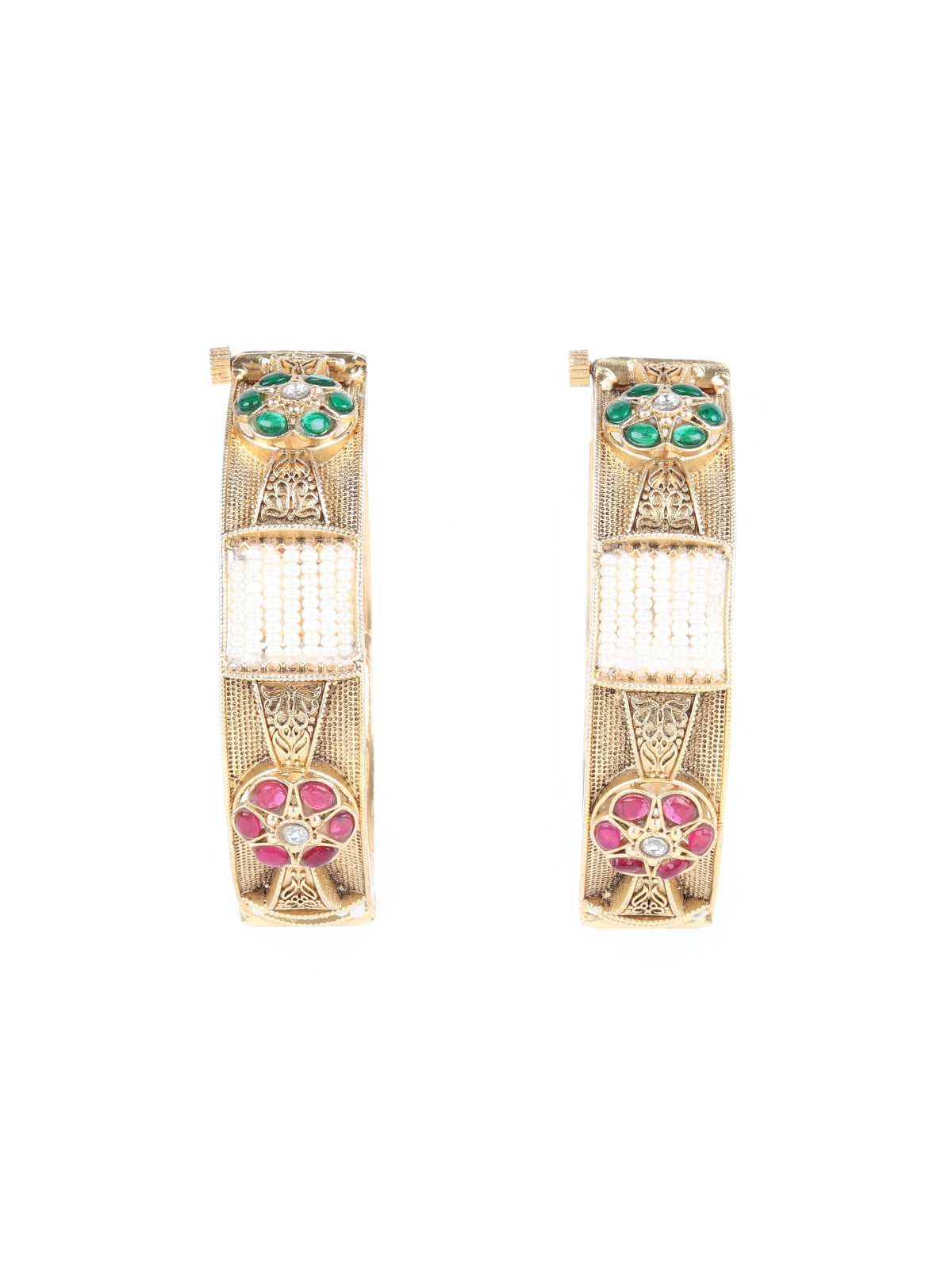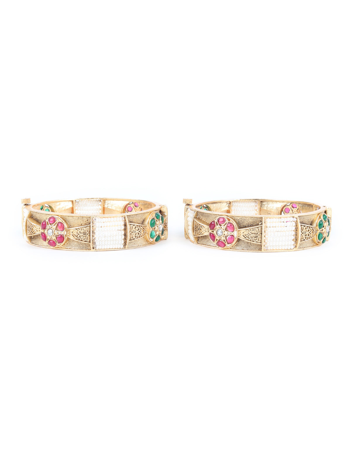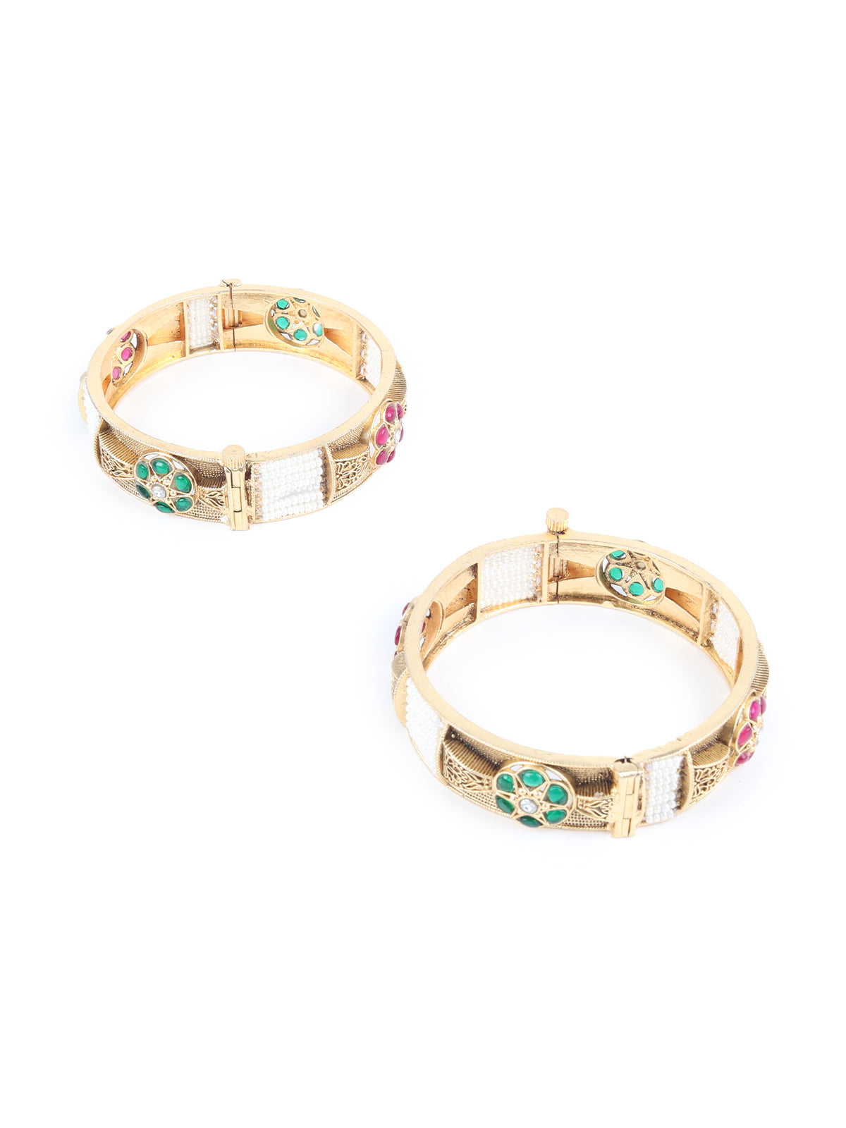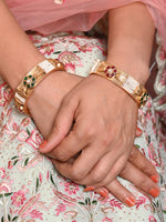 Make a statement with Rajwada's Gold Beads and Faux Stone Embellished Bangles for Women - Set of 2. Perfect for adding a hint of luxury to any outfit. Get yours now
