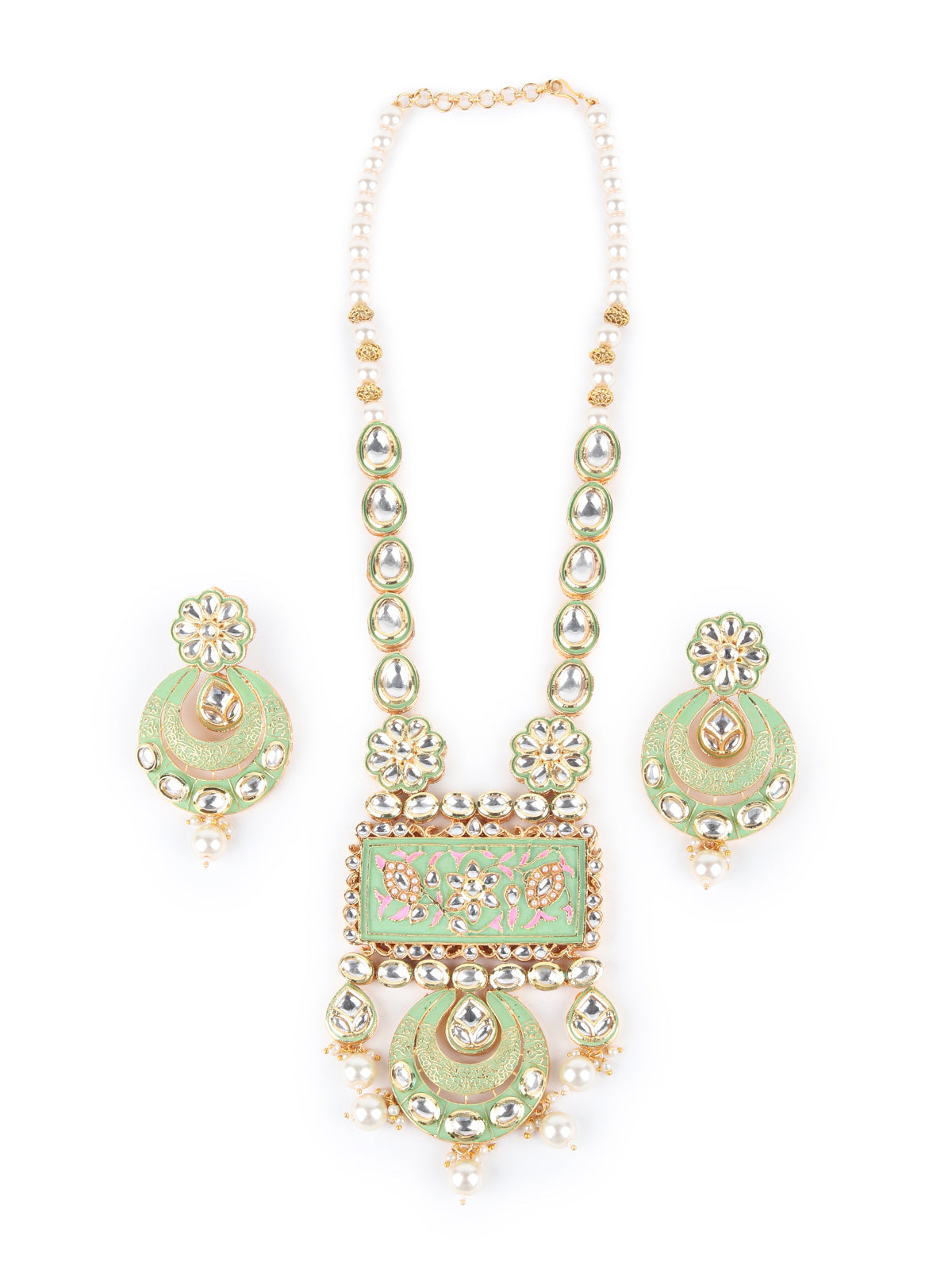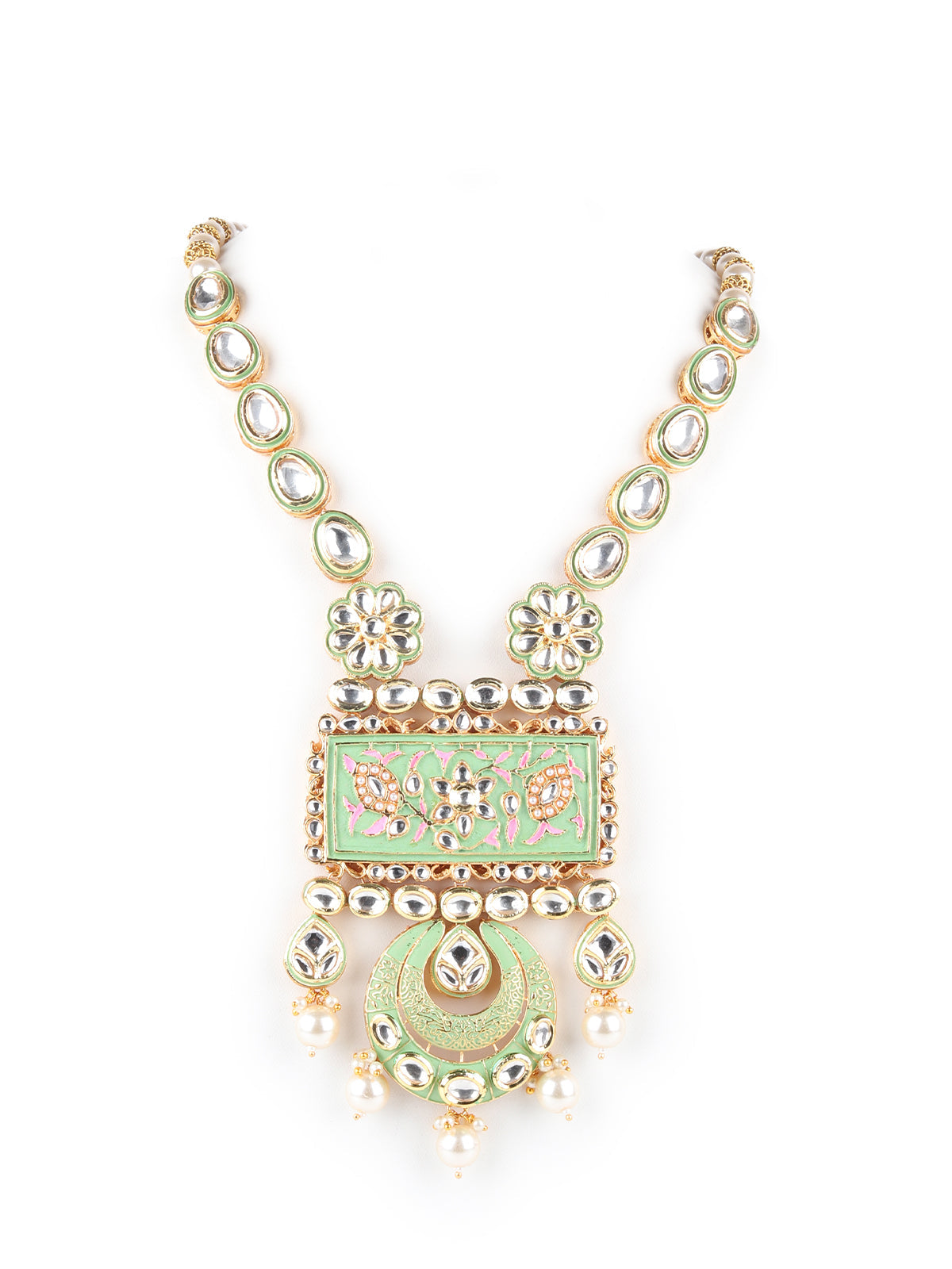 Rajwada Green Beads And Kundan Embellished Long Neck Piece For Women