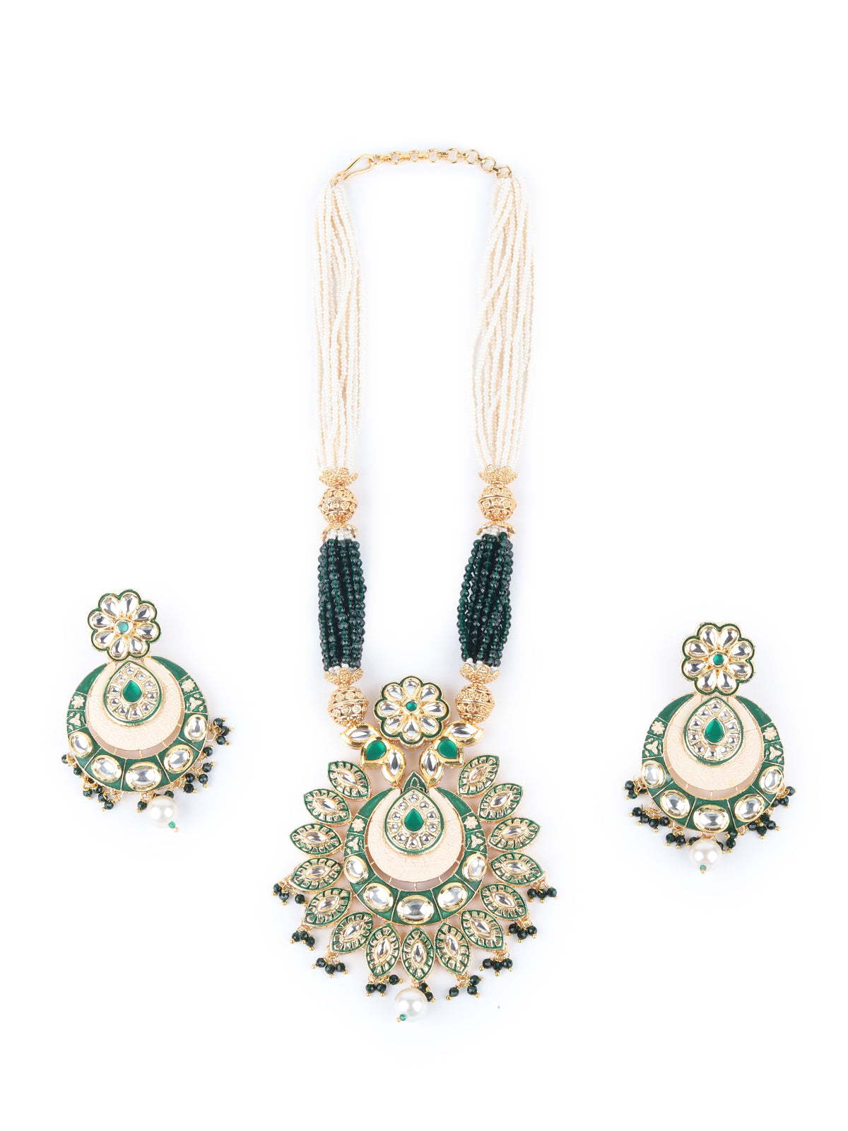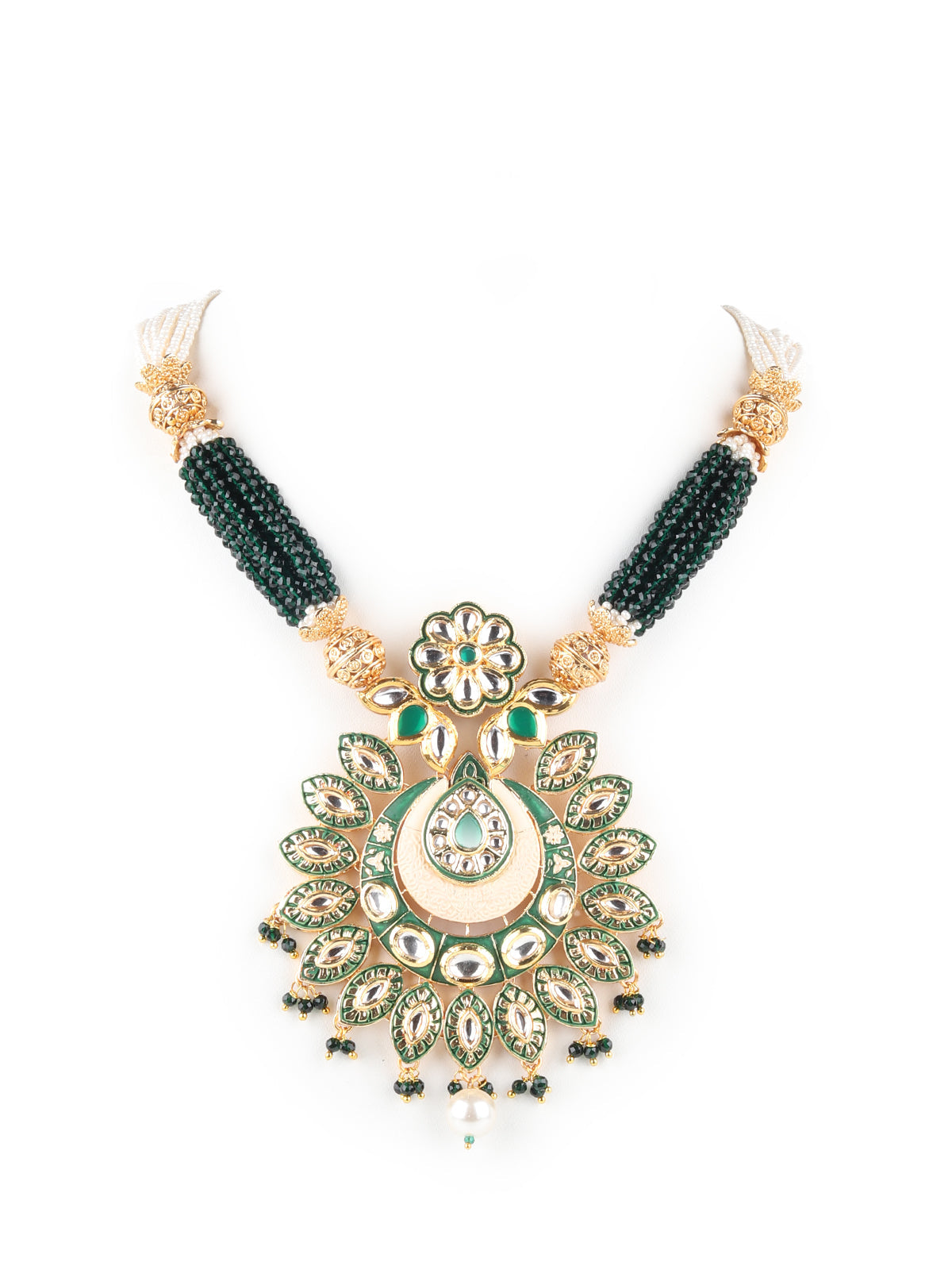 Rajwada Green Faux Pearls Embellished Kundan Neck Piece For Women