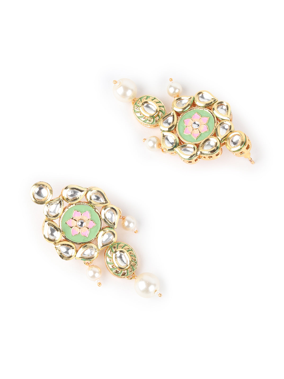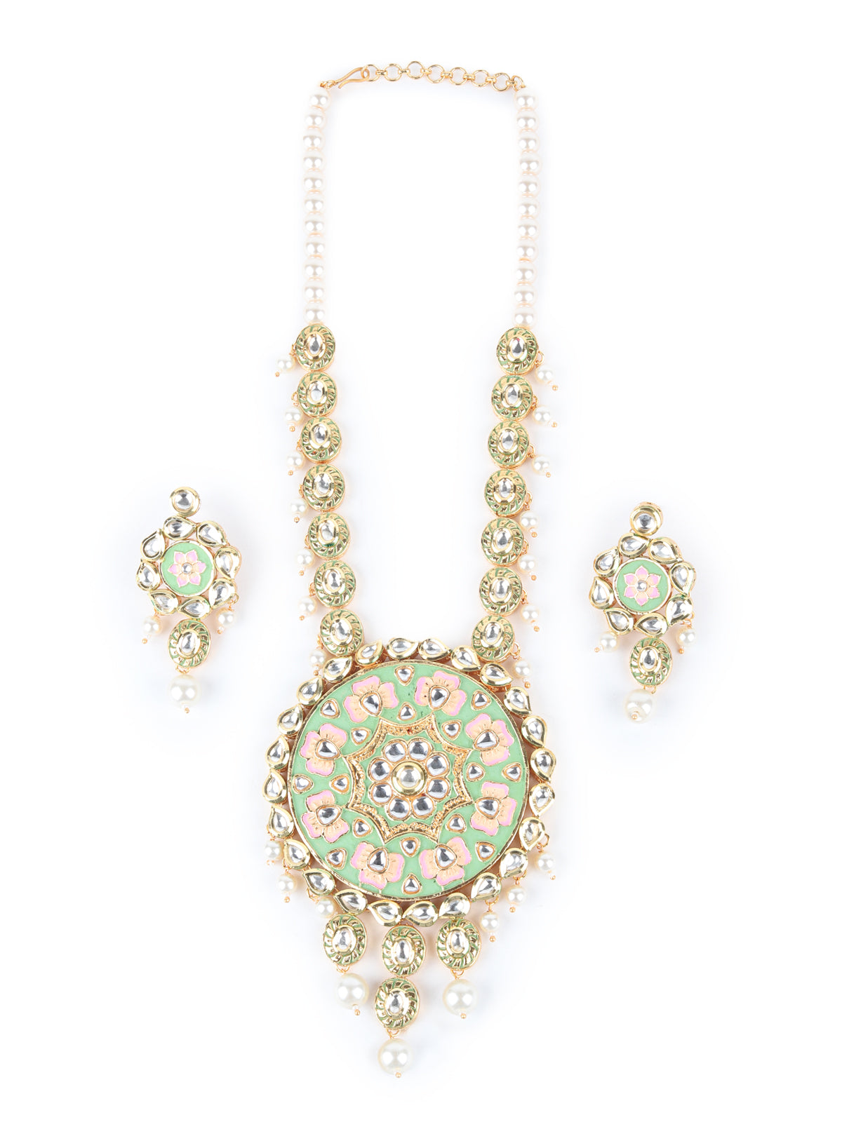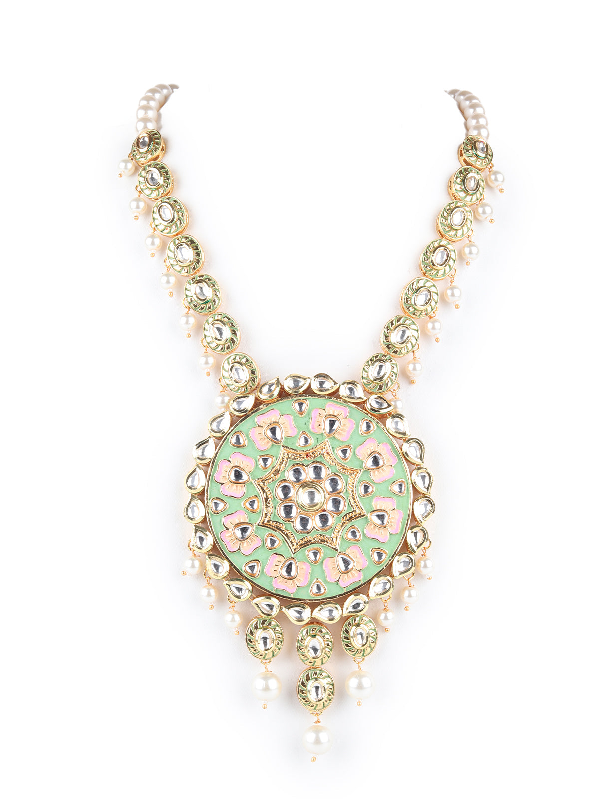 Rajwada Green Meenkari And Kundan Embellished Neck Piece For Women