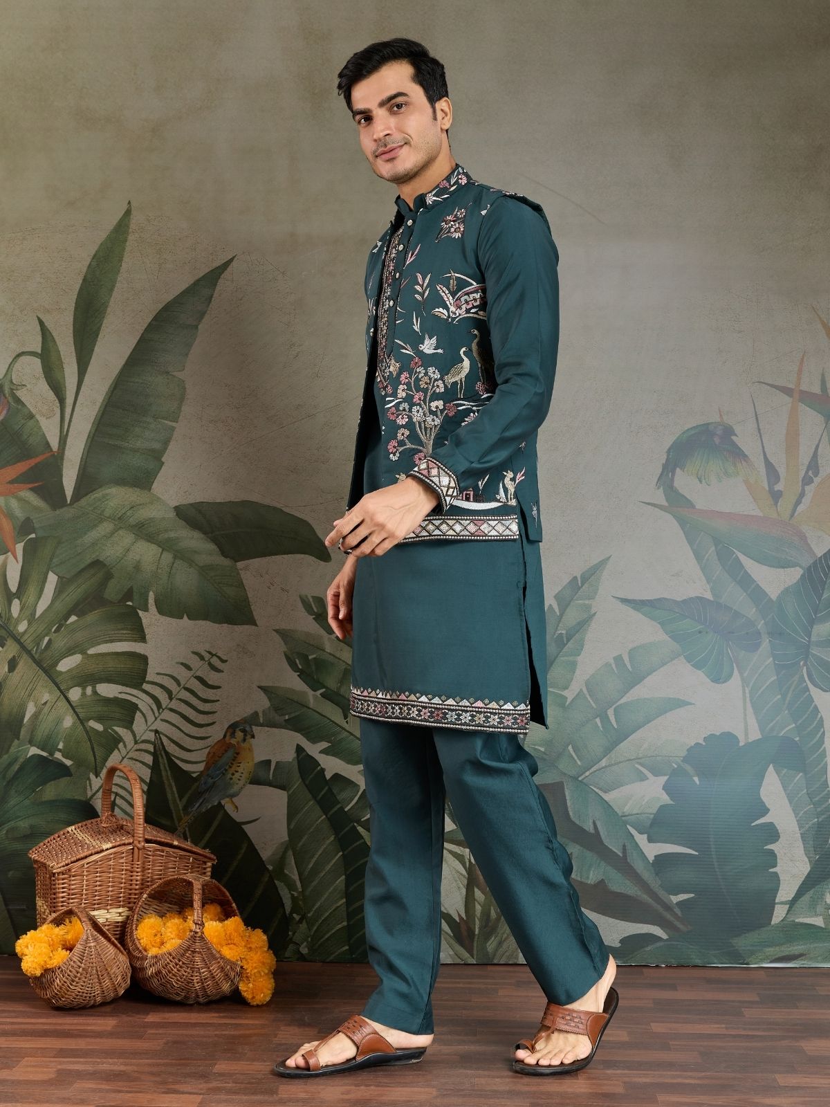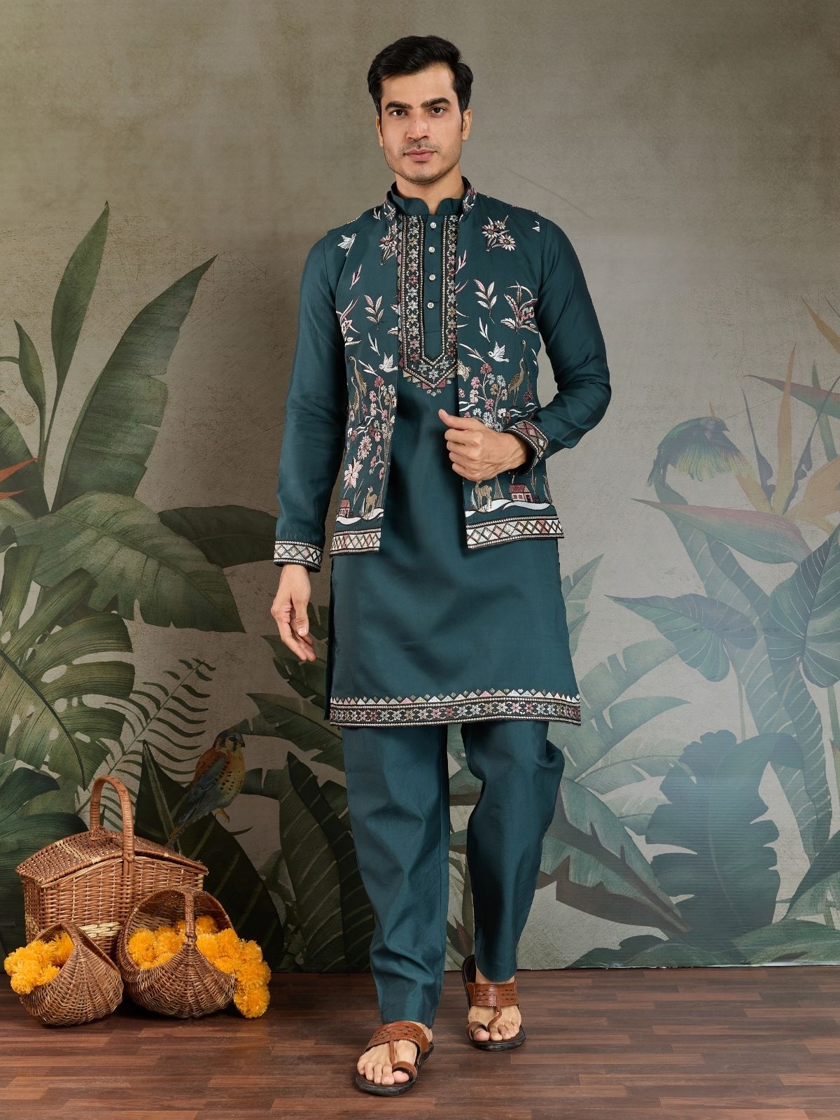 Embrace timeless elegance with this traditional men's kurta set. Crafted with premium fabrics and intricate detailing, it exudes sophistication. Ideal for cultural celebrations or casual events, offering comfort and style in equal measure.