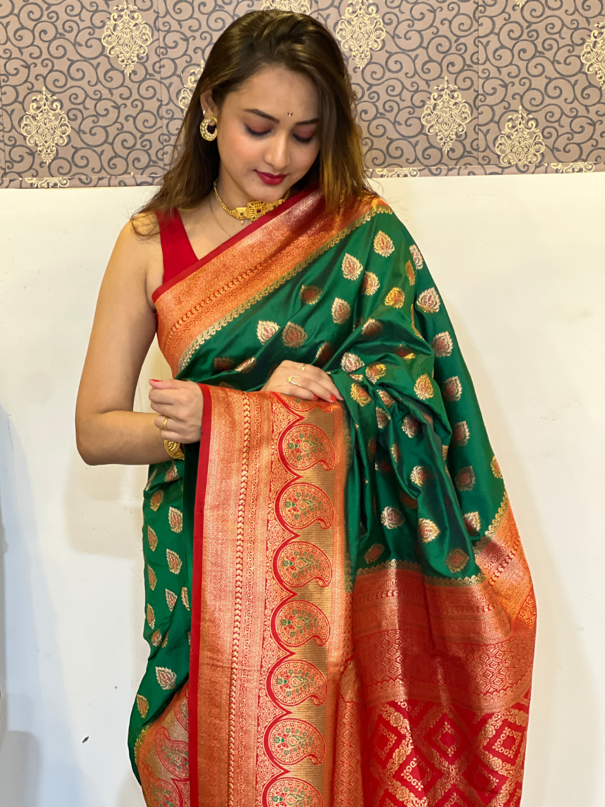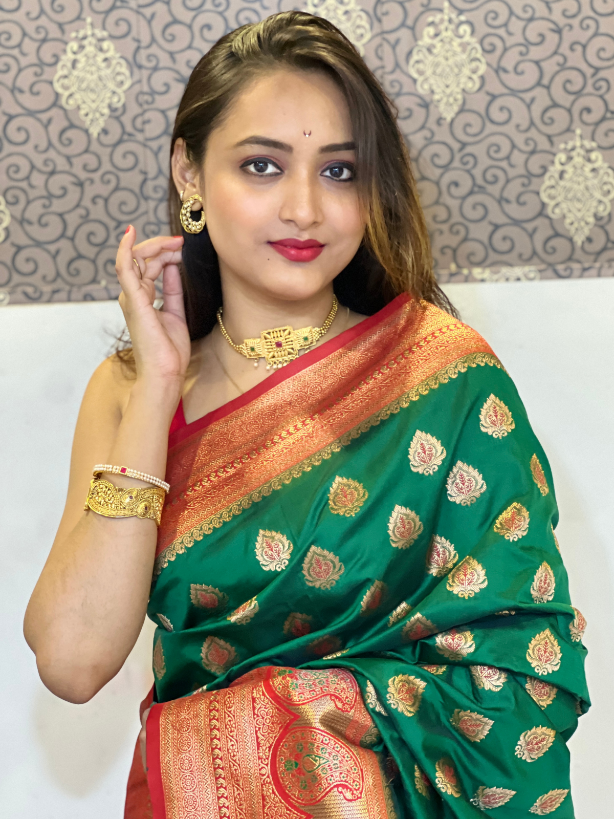 Re-Define Your Style In The Beautiful Woven Design Saree With A Matching Blouse Pieces. Match It With A Clutch And A Pair Of Heeled Sandals And You Are Ready To Slay.