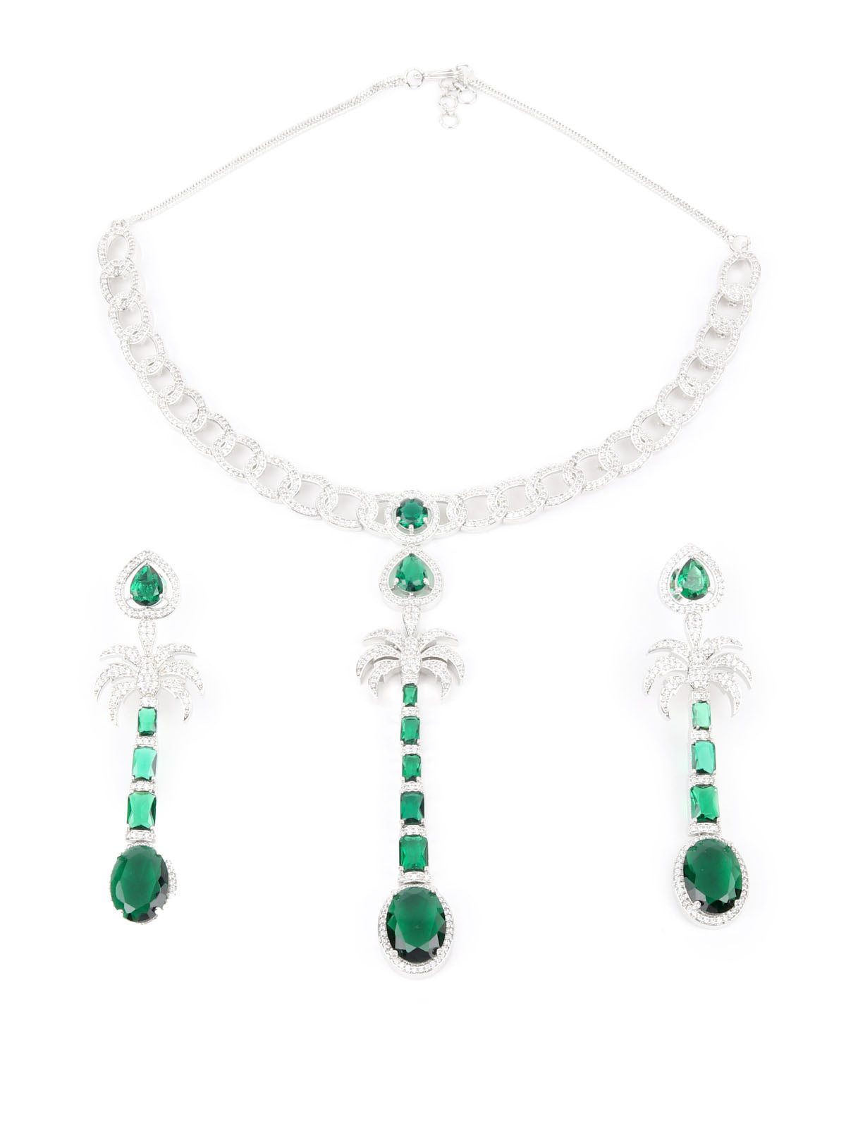 Rajwada Green Zircon Stones Studded Neckpiece Set For Women