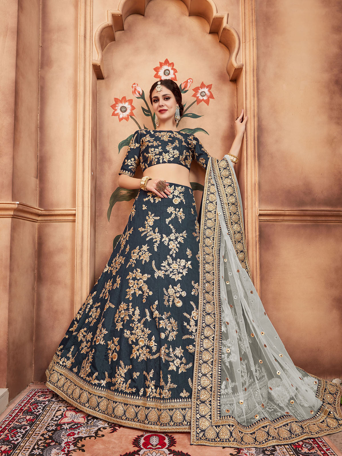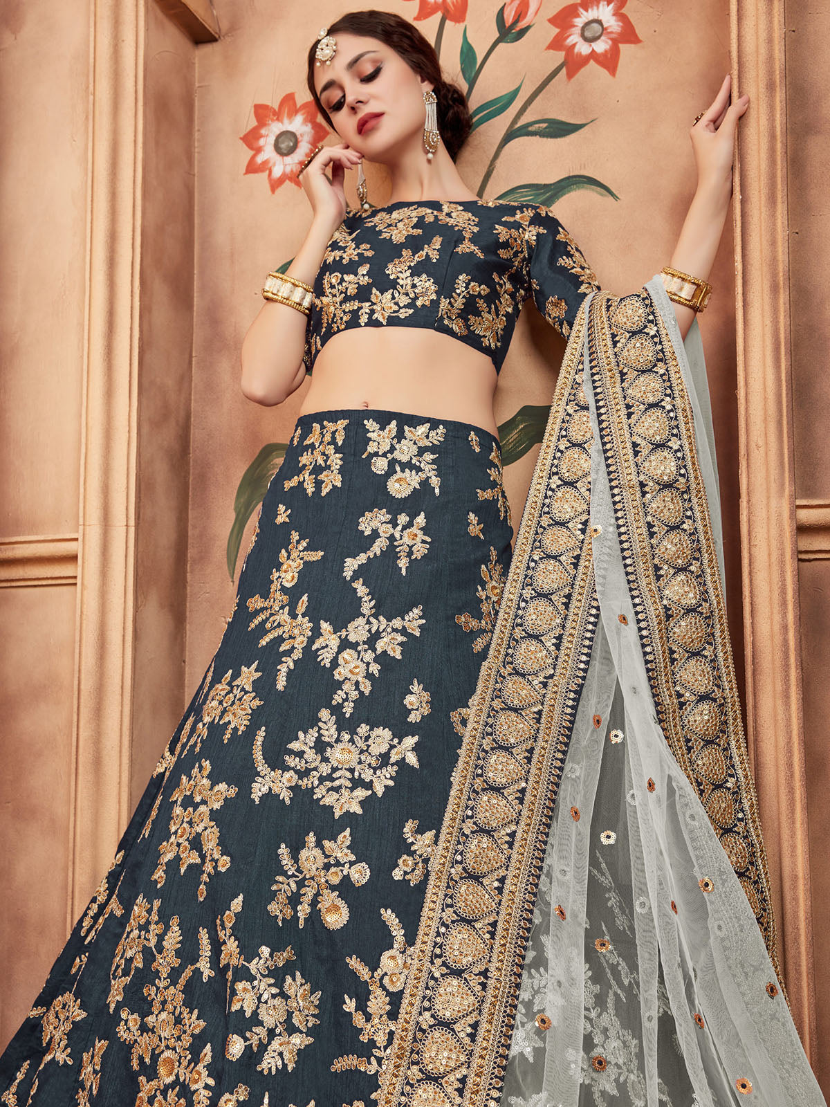 - Lehenga Color: Grey