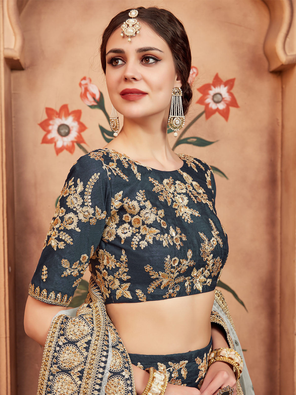 - Lehenga Work: Embroidered