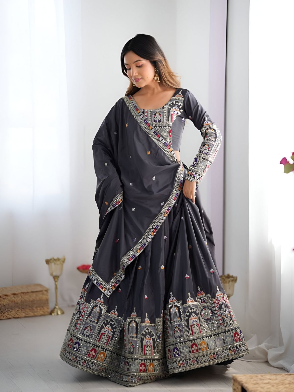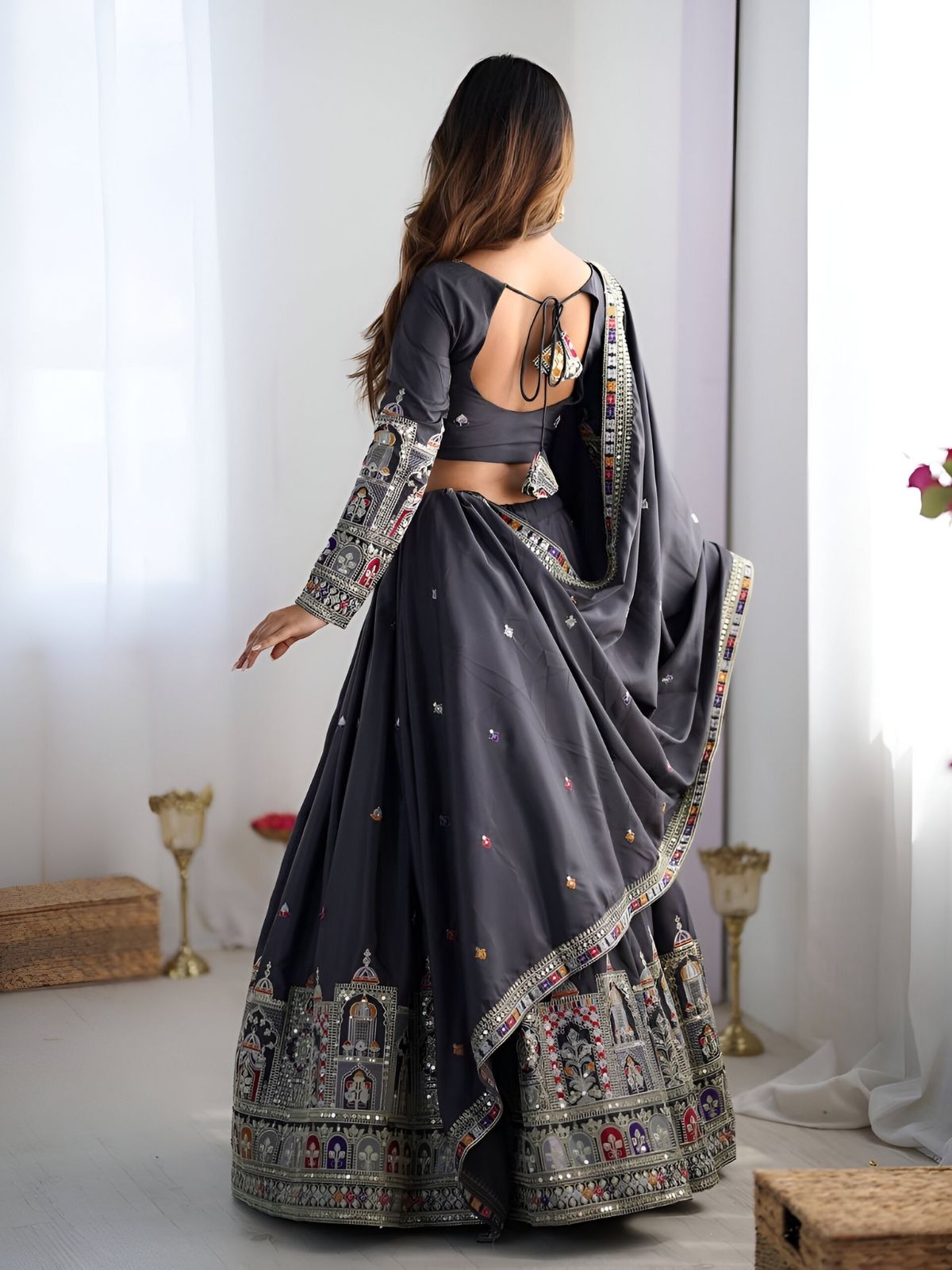 - Lehenga Color : Grey