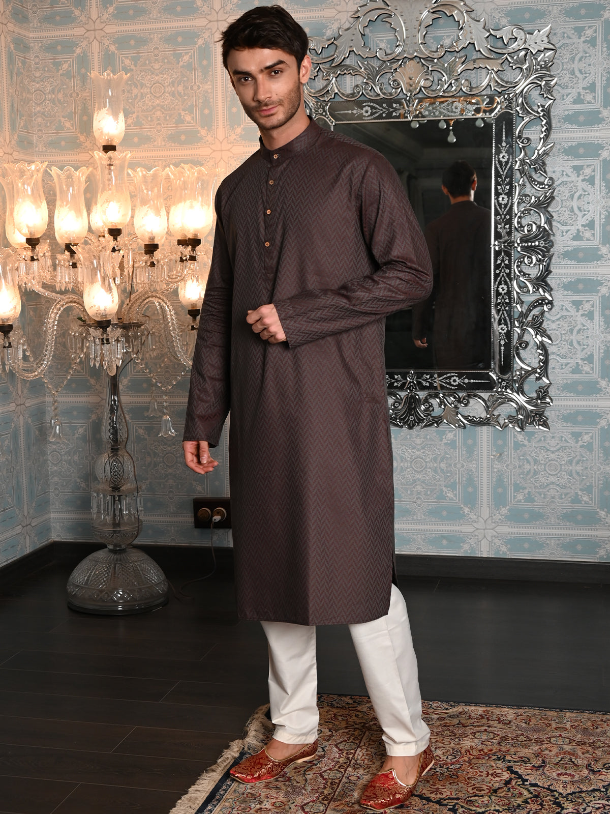 Embrace timeless elegance with this traditional men's kurta set. Crafted with premium fabrics and intricate detailing, it exudes sophistication. Ideal for cultural celebrations or casual events, offering comfort and style in equal measure.