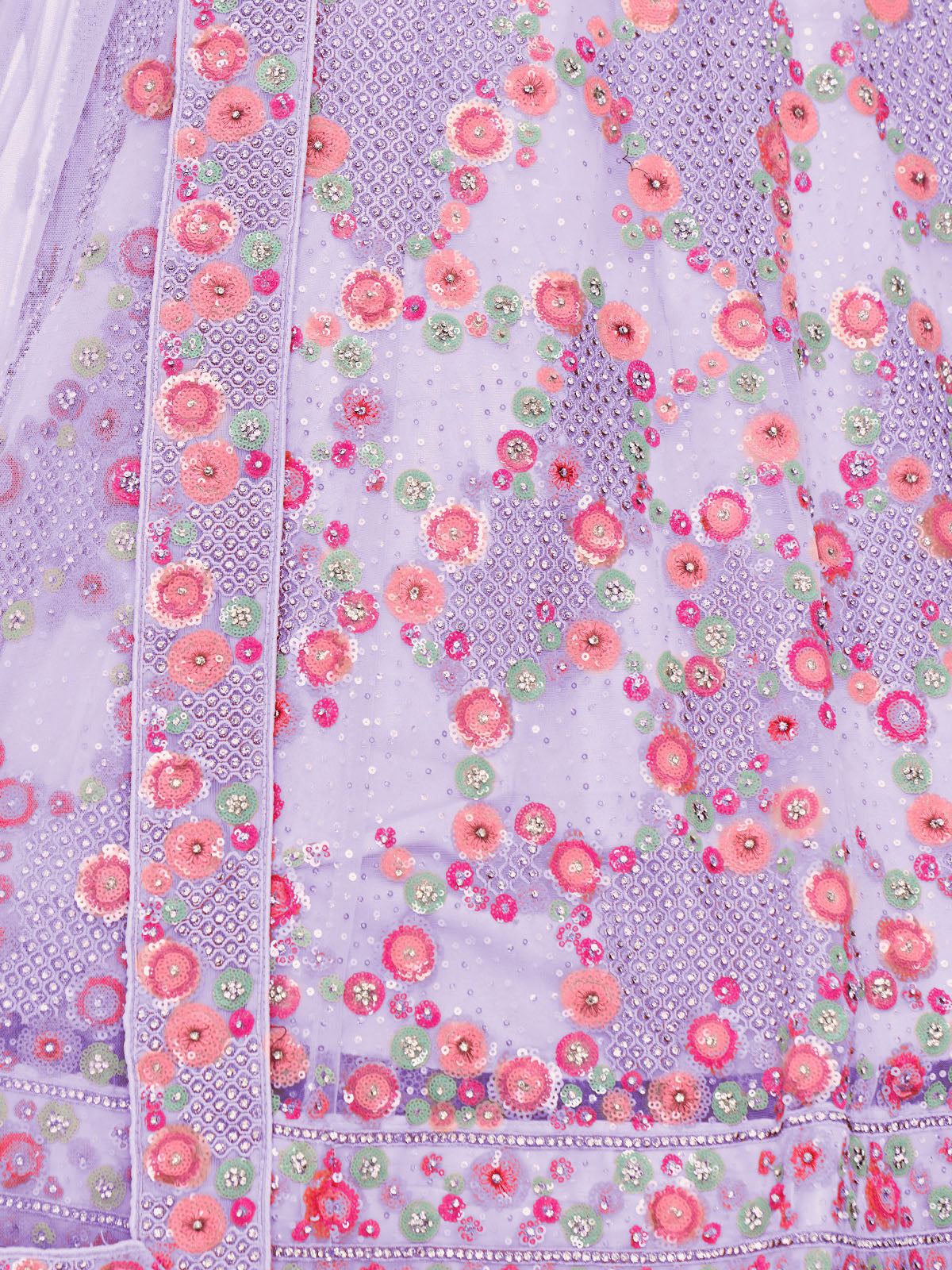 Rajwada Lavender Embroidered Soft Net Semi Stitched Lehenga With Blouse For Women