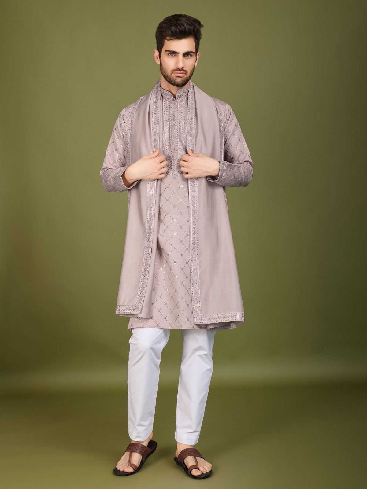 Embrace Timeless Elegance With This Traditional Men's Kurta With Jacket, Ideal For Cultural Celebrations Or Casual Events, Offering Comfort And Style In Equal Measure.