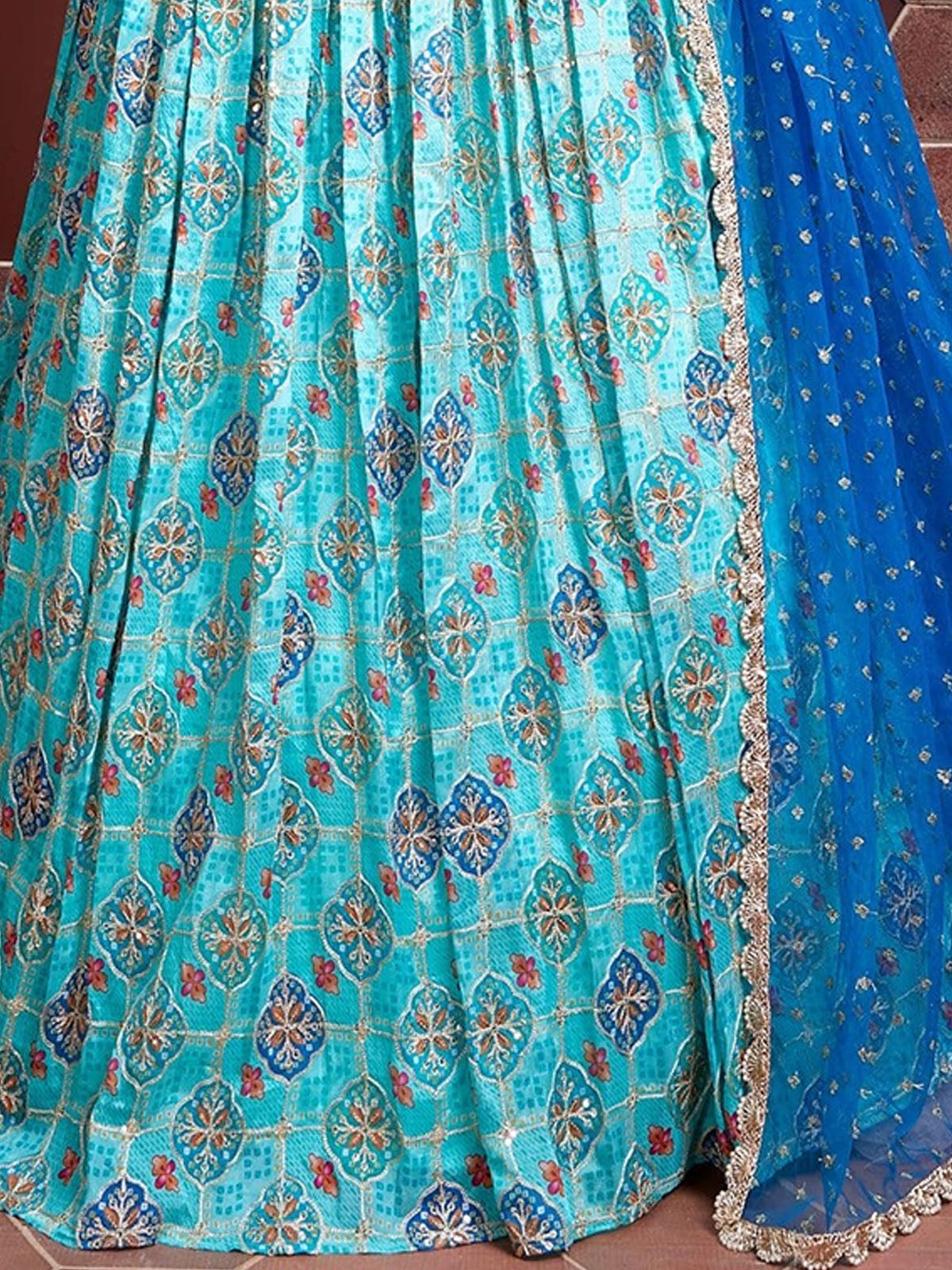 - Lehenga Work: Digital Print, Embroidery And Mirror Work